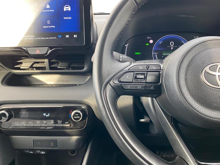 This 2024 Toyota Yaris VVT-h Design is a Toyota manufacturer approved vehicle with a full dealership service history, having had only one owner. It boasts a 1.5L Petrol Hybrid engine and meets Euro 6 emission standards. This model comes with a 12 month warranty and a 12 month MOT provided on purchase. The last service was completed on 2025-06-30 at 19370 miles.