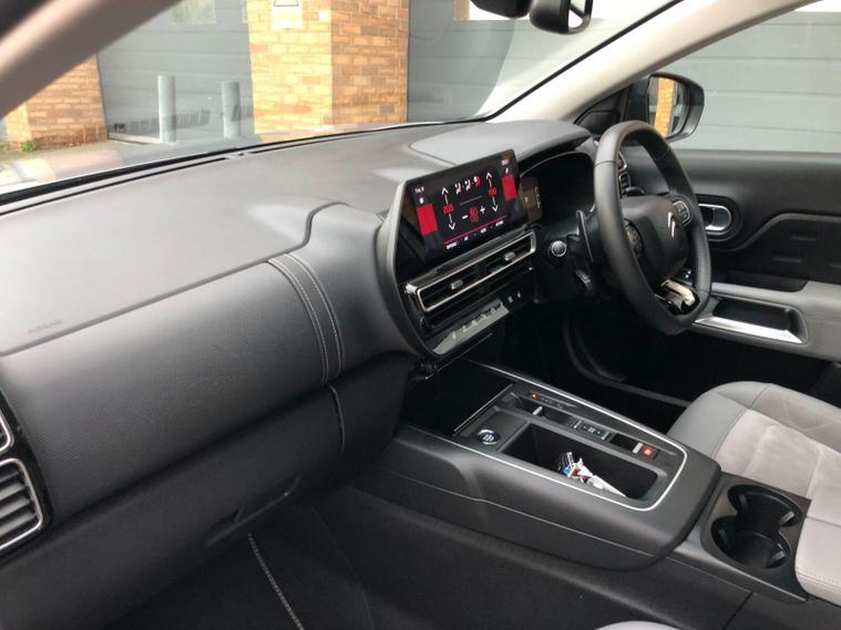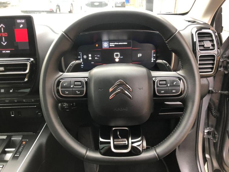 Navigating and parking are made simpler with the City Camera Pack, which includes front and rear parking sensors and a rear camera. The acoustic laminated windscreen is equipped with rain and brightness sensors, automatically activating the headlights when needed. Connectivity is seamless thanks to Citroen Connect Play, supporting both Android Auto and Apple CarPlay. This C5 Aircross also boasts a highlight fuel economy of 53 mpg, demonstrating its efficiency compared to similar vehicles, and offers generous boot space for all your needs.