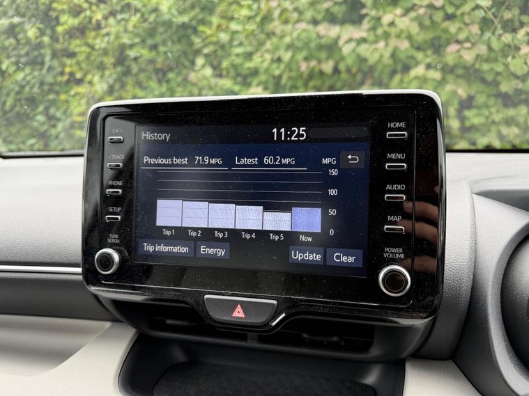 The highlights of this Toyota Yaris VVT-h Excel demonstrate its superior value and efficiency compared to other vehicles in its class. Its exceptional fuel economy of 66 mpg means fewer stops at the petrol station and lower running costs. Coupled with its low CO2 emissions, this Yaris is an environmentally conscious choice. The combination of advanced technology, such as keyless entry and smartphone integration, alongside its economical hybrid powertrain and low mileage, makes this 2022 Yaris Excel a truly outstanding option for any discerning driver.