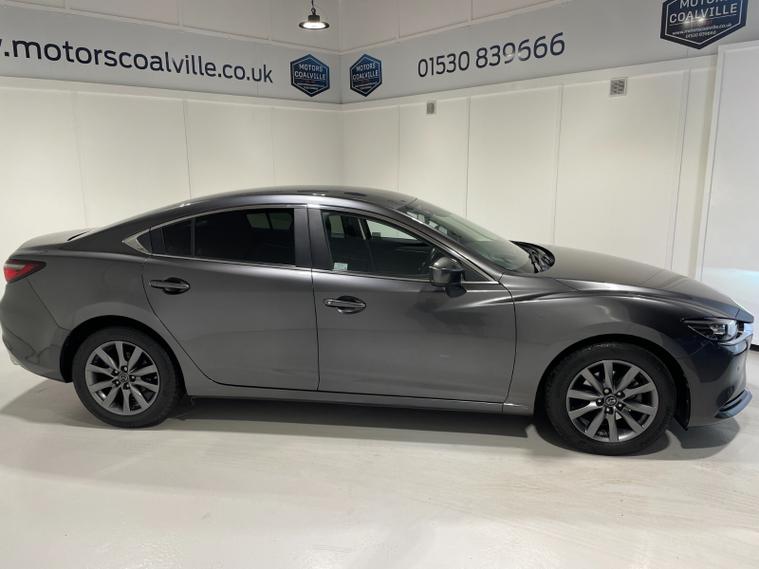 2019 68 Reg Mazda 6 SE-L NAV+ 2.0 SKYACTIVE-G (145PS) AUTOMATIC 4dr. Machine Grey metallic with Black cloth, DUAL ZONE Automatic Climate Control AIR CON, 7” TOUCHSCREEN SATELLITE NAVIGATION, front and rear parking sensors, Bluetooth USB, PRIVACY glass, 17 inch Gunmetal alloys, cruise control, power heated folding electric door mirrors, tyre pressure monitoring system, front and rear electric windows, auto wipers, auto lights, keyless start, privacy glass, hill hold assist, 22, 520 miles (FD 68 XZV).