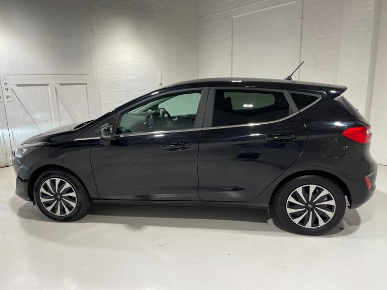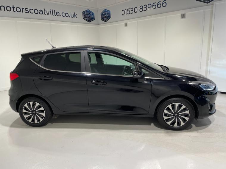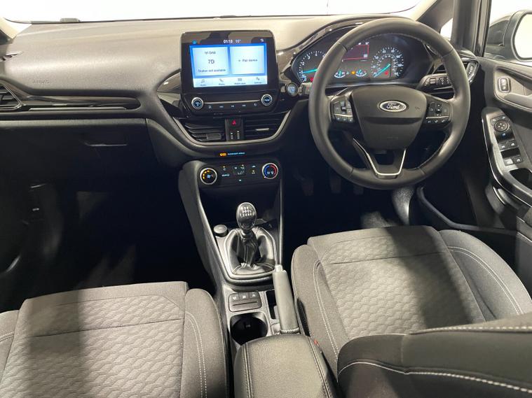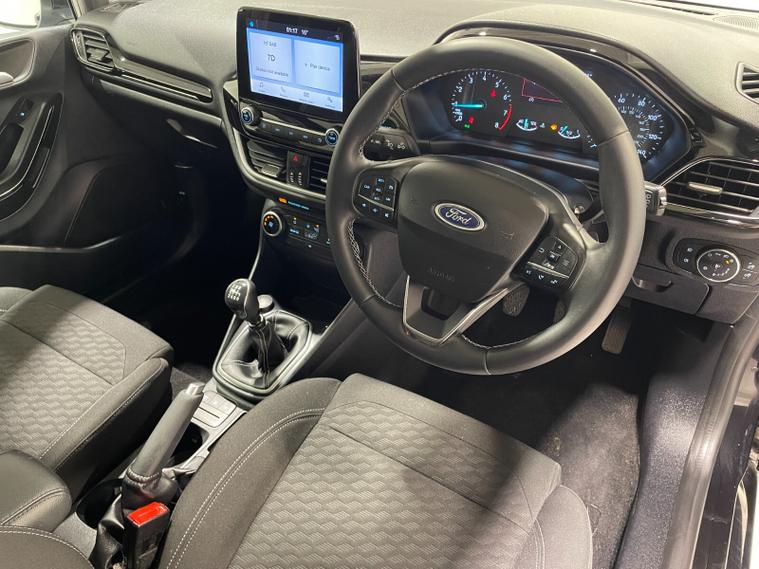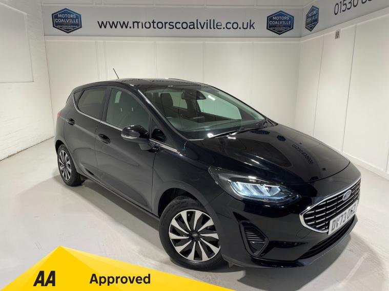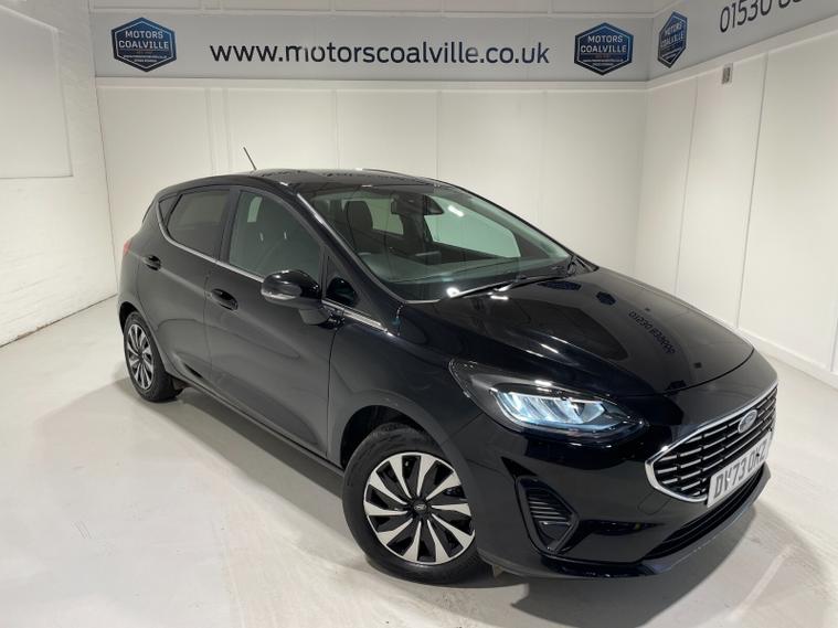 2023 73 Reg Fiesta 1.0 Turbo EcoBoost (100PS) 6 spd TITANIUM 5dr. Agate Black metallic with ebony cloth interior, 16 inch design wheels, SYNC 3 DAB TOUCHSCREEN, REAR PARKING SENSORS, AIR CONDITIONING, LED night signature rear lights, PRIVACY GLASS, KEYLESS start with FORD power start button, cruise control, auto light and rain sensing wipers, centre console with arm rest, traffic sign recognition, tyre pressure monitoring system, Thatcham alarm, NCAP Pack (lane-keeping alert & lane-keeping aid, speed limiter, rear seat belt minder, rear centre head restraint & auto-headlamps), front fog lamps with cornering lights, heated front screen, remote central locking, electric front windows, ESP, Hill start assist, trip computer, ambient lighting, 5, 952 miles (DV 73 OKZ).