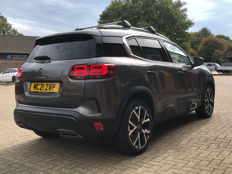 This 2021 Citroen C5 Aircross Shine Plus is a remarkable example, having been cherished by just one owner from new and boasting exceptionally low mileage of 28850 miles. As a Citroen manufacturer approved vehicle, it offers peace of mind, featuring a sophisticated 1.6L Petrol Plug-in Hybrid engine that meets Euro 6 emission standards. This premium Shine Plus trim level comes equipped with a convenient Smartphone Charging Plate for wireless phone charging, and striking LED headlights that automatically activate via windscreen mounted sensors.