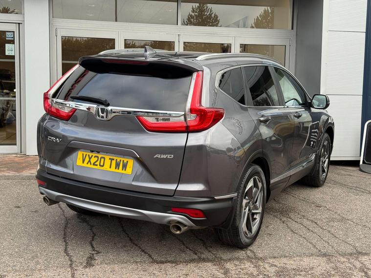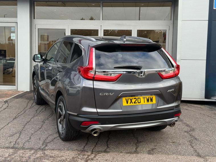 This 2020 Honda CR-V VTEC Turbo EX is a Honda manufacturer approved vehicle, offering peace of mind alongside its impressive specifications. Powered by a 1.5 litre petrol engine and featuring a Four Wheel Drive drivetrain, this Euro 6 compliant model combines efficiency with capability. The EX trim level ensures a premium experience, with notable features including front and rear heated seats for all weather comfort, an 8 way power adjustable driver's seat with memory function, and automatic dusk sensing headlights.