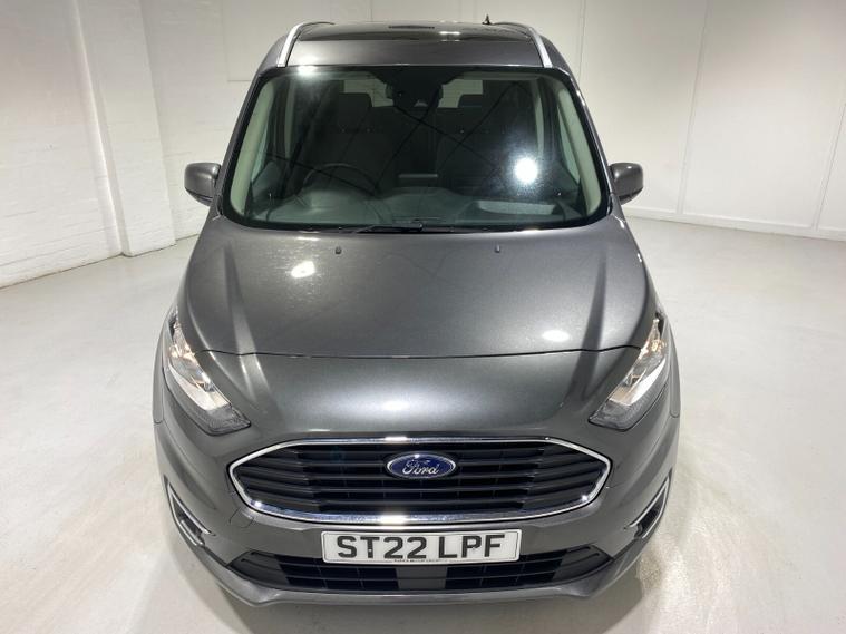 2022 22 Reg Ford Tourneo Connect 1.5 TDCi (120PS) TITANIUM AUTOMATIC 5dr. Magnetic Grey metallic with cloth interior, HEATED FRONT SEATS, 16 inch alloy wheels, PANORAMIC ROOF, ICE PACK 10 featuring SYNC3 TOUCHSCREEN SATELLITE NAVIGATION, CD, DAB, Bluetooth USB, Apple CarPlay, Android Auto and REAR CAMERA, AIR CONDITIONING, REAR PARKING SENSORS, PRIVACY GLASS, electric front and rear windows, heated front and rear screens, cruise control with speed limiter, roof rails, auto lights, rain sensing wipers, front driver and passenger, active city stop, side and curtain airbags, front fog lights, electrically operated heated and power folding door mirrors, tinted glass, ABS, ESP, 6, 209 miles (ST 22 LPF).