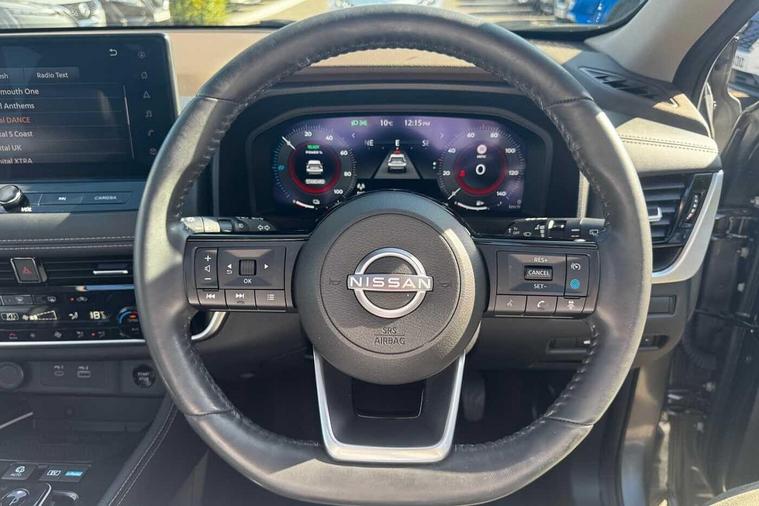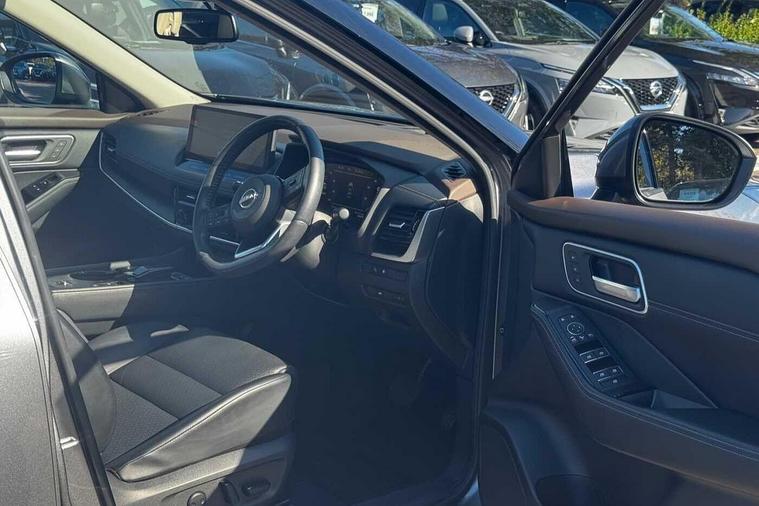 This 2023 Nissan X-Trail e-POWER Tekna is a Nissan manufacturer approved vehicle, offering peace of mind with its proven quality. It features a sophisticated 1.5 litre petrol hybrid engine, meeting the Euro 6 emission class. The Tekna trim level ensures a premium experience, complemented by the Intelligent Around View Monitor which includes a 360 degree camera and parking assistance, along with a rear view camera and front and rear parking sensors. Safety is further enhanced by Blind Spot Warning and Intelligent Blind Spot Intervention, both incorporating Blind Spot Assistance.