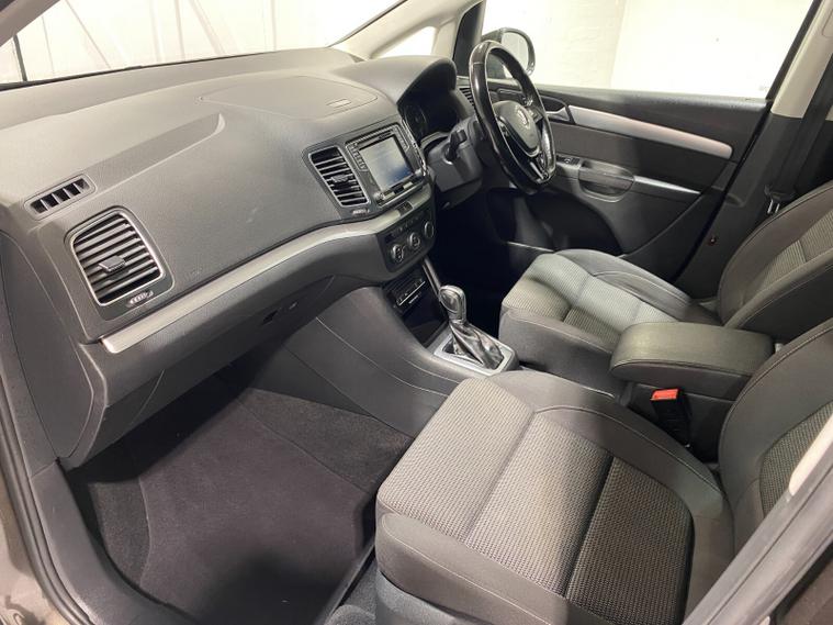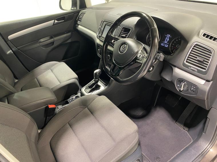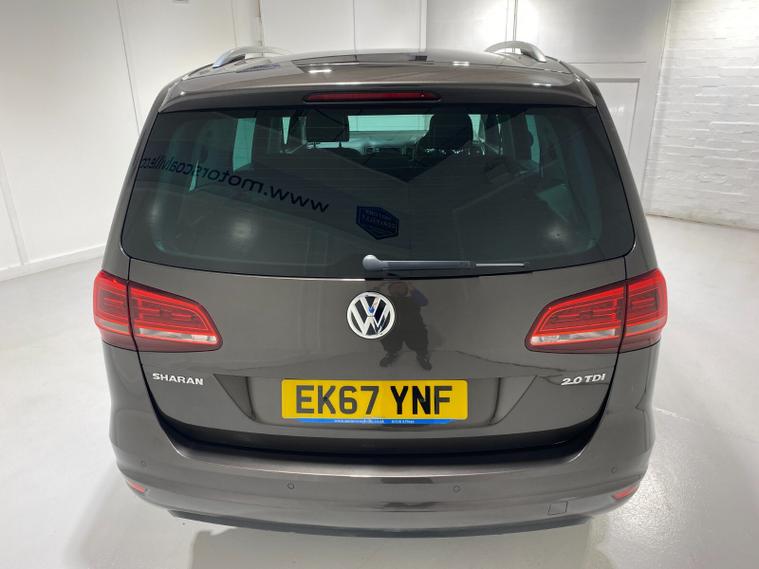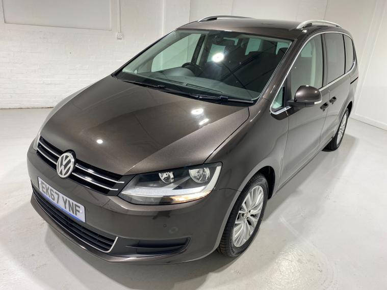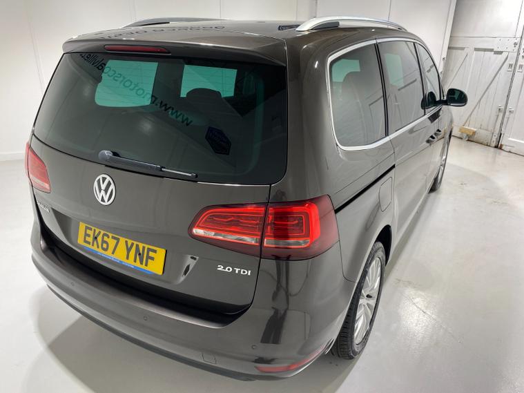 2017 67 Reg Volkswagen Sharan 2.0 TDi BlueMotion Tech (150PS) SE AUTOMATIC (7 seat) 5 dr. Oak Brown metallic, Ebony full cloth interior, aluminium roof rails, 17 inch alloy wheels, sliding rear doors, SATELLITE NAVIGATION, front & rear park assist, electric handbrake, lane assist, Bluetooth USB, Climate Control AIR CON, front and rear electric windows, privacy glass, roof rails, tyre pressure monitoring, 25, 868 miles (EK 67 YNF).