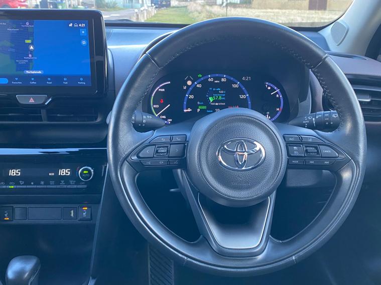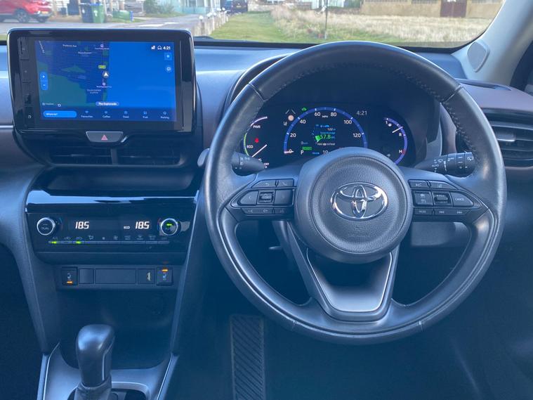 This 2022 Toyota Yaris Cross VVT-h Excel boasts an exceptionally low mileage of just 8591 miles, coupled with a full dealership service history, including its most recent service at 8503 miles on 22nd September 2025, and remains Toyota manufacturer approved. This one owner vehicle is presented in excellent condition and benefits from a 12 month warranty and 12 months MOT provided on purchase. It features the desirable Android Auto and Apple CarPlay integration, alongside the Advanced Safety Pack which includes Blind Spot Assistance and front and rear parking sensors for enhanced awareness and manoeuvrability. Keyless entry and push button start, along with Bluetooth connectivity, further add to the convenience of this Euro 6 compliant 1.5L petrol hybrid.