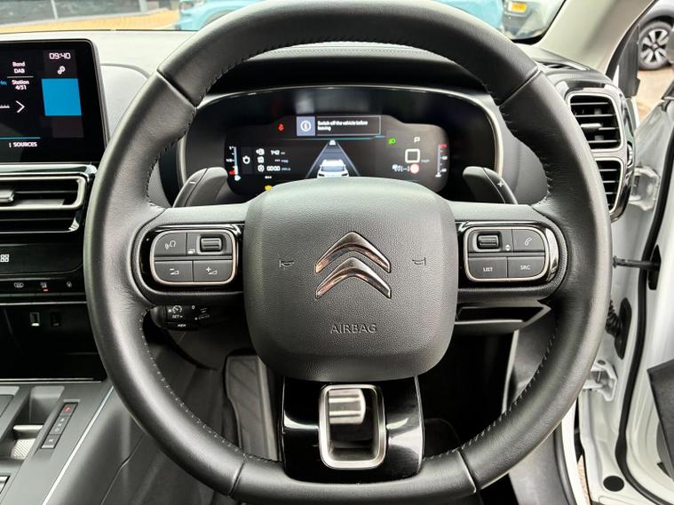 This 2023 Citroen C5 Aircross BlueHDi Shine is a Citroen manufacturer approved vehicle, offering peace of mind with a 12 month warranty and a full service history. This stylish SUV features a 1.5L Diesel Euro 6 engine, ensuring efficient performance. Notable features include advanced LED headlights that automatically activate, electric and heated folding door mirrors with blind spot monitoring and approach lighting, and an acoustic laminated windscreen with rain and brightness sensors. Inside, you'll find Citroen Connect Play, compatible with both Android Auto and Apple CarPlay, for seamless smartphone integration.