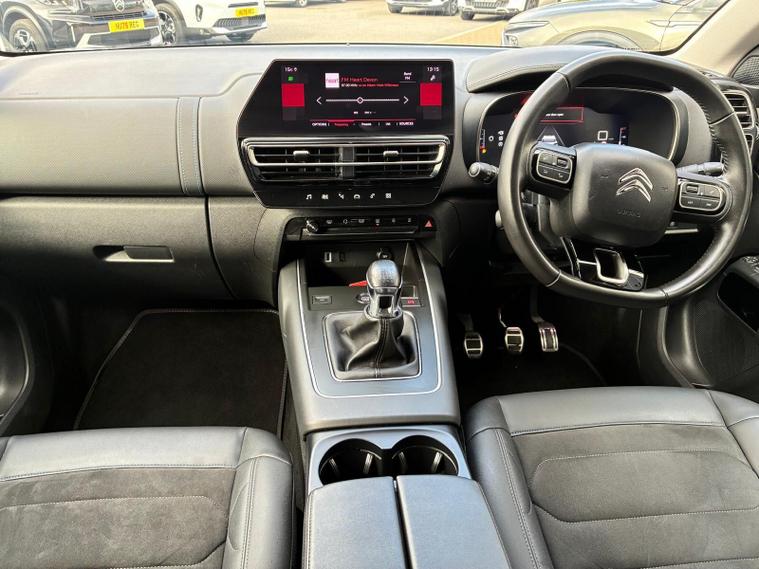This 2022 Citroen C5 Aircross Shine is a Citroen manufacturer approved vehicle, boasting a full service history and just one owner from new, all covered by a 12 month warranty. This stylish SUV is equipped with a 1.2 litre Euro 6 petrol engine, offering an impressive fuel economy of 49 miles per gallon. Inside, you'll find the intuitive Citroen Connect Play system with a 10 inch touchscreen, compatible with both Android Auto and Apple CarPlay, allowing seamless smartphone integration.