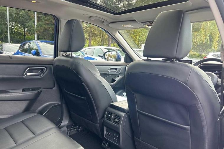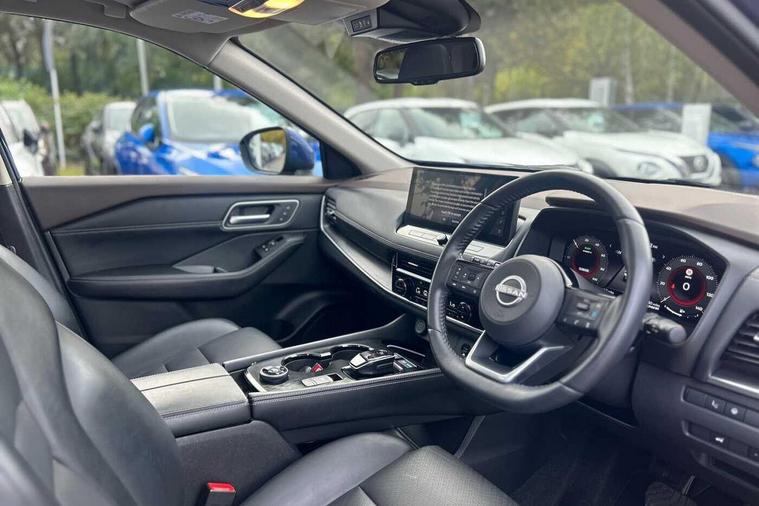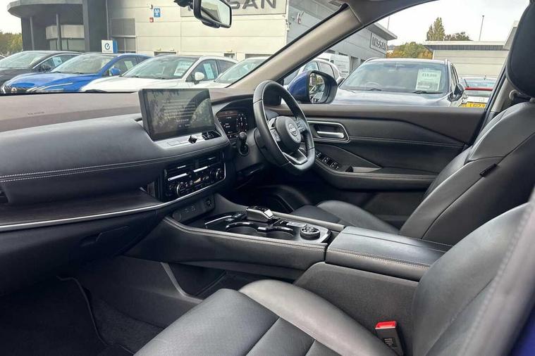 This 2022 Nissan X-Trail e-POWER Tekna boasts exceptionally low mileage for its age, having covered just 17, 611 miles, and comes with Nissan manufacturer approval. This Four Wheel Drive model features a 1.5L Petrol Hybrid engine, meeting Euro 6 emission standards. The Tekna trim level is equipped with a suite of advanced technology, including an Intelligent Around View Monitor with 360 degree camera and parking assistance, Blind Spot Warning with Blind Spot Assistance, and wireless Apple CarPlay. For added comfort, it also includes a heated steering wheel and front and rear parking sensors.