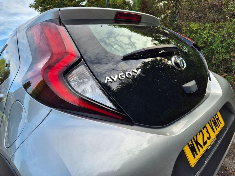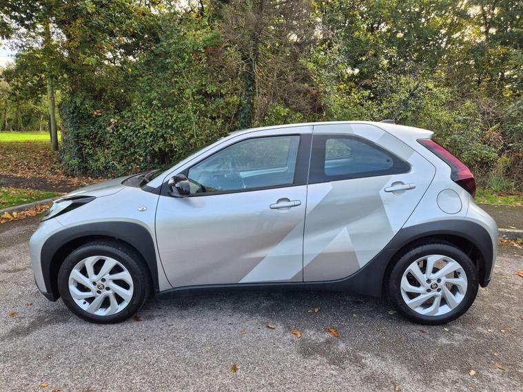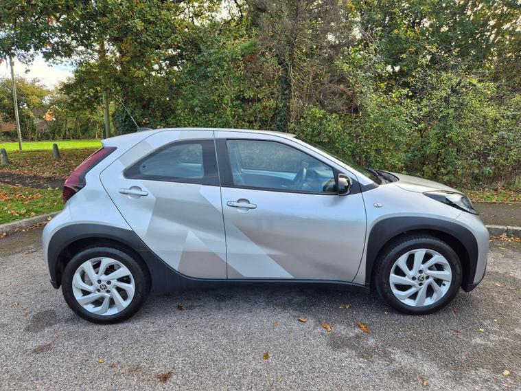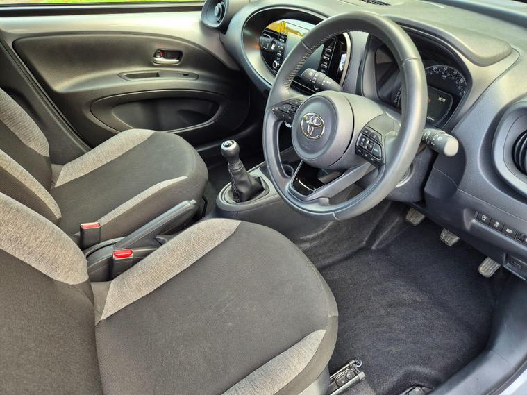 This 2023 Toyota Aygo X VVT-i Pure boasts an exceptionally low mileage, making it a standout choice for those seeking a nearly new vehicle. This Euro 6 compliant, 1.0L petrol model comes with a full dealership service history, most recently serviced on 27 August 2025 at 8606 miles. As a Toyota manufacturer approved vehicle, it includes a 12 month warranty and a 12 month MOT for your peace of mind. Inside, you'll find practical features such as manual air conditioning and Bluetooth connectivity, while the Toyota Safety Sense suite enhances your driving experience with adaptive cruise control, conveniently operated via a switch on the steering wheel, and automatic headlights.