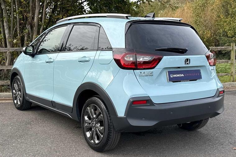 This 2022 Honda Jazz i-MMD Crosstar EX presents an exceptional opportunity with its remarkably low mileage of just 5784 miles. As a Honda manufacturer approved vehicle, this Crosstar EX model boasts a 1.5L Petrol Hybrid Engine, adhering to Euro 6 emissions standards. It comes equipped with desirable features including Climate Control Air Conditioning, a Rear View Camera for enhanced parking assistance, and striking LED Headlights. The Adaptive Cruise Control adds a layer of convenience for longer journeys.