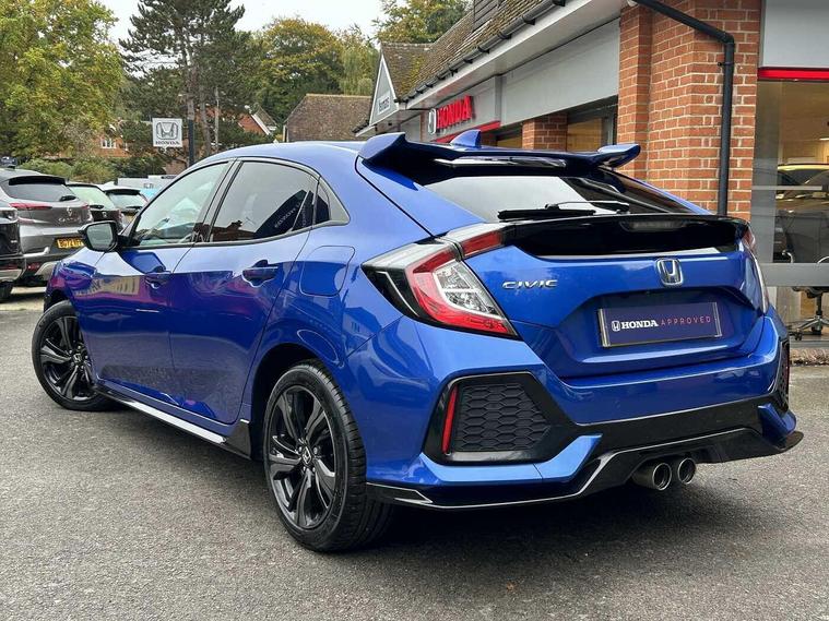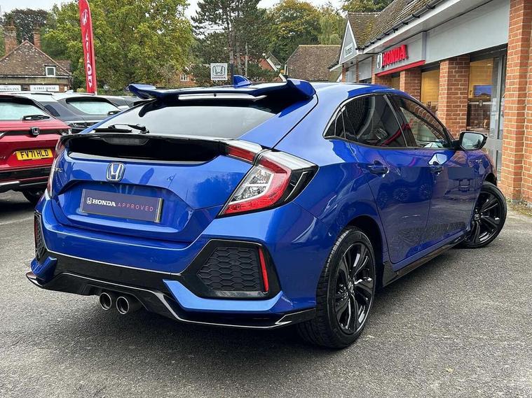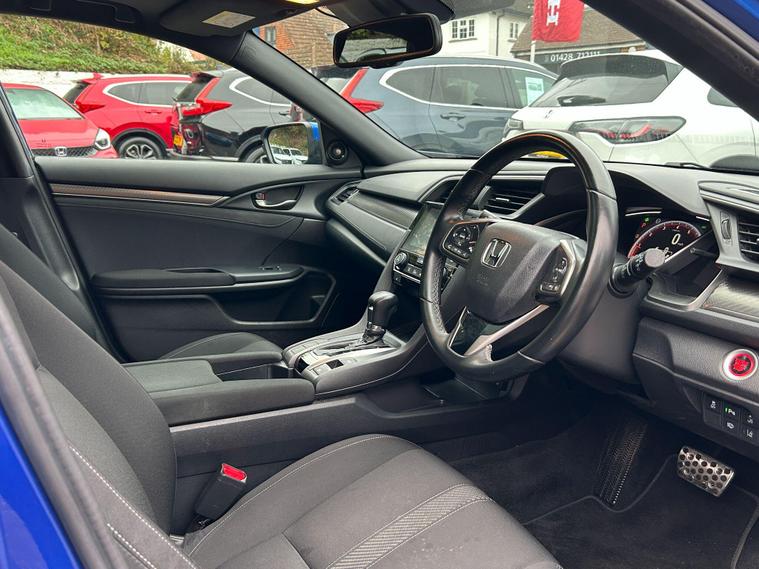 This 2019 Honda Civic VTEC Turbo Sport Plus is a Honda manufacturer approved vehicle, boasting a full service history with its last service completed on 2025-07-18 at 60237 miles, and comes with a 12 month warranty and 12 months MOT for your peace of mind. This Euro 6 compliant 1.5L petrol model has had only one owner from new and features striking LED headlights and a rear parking camera to aid your journeys.