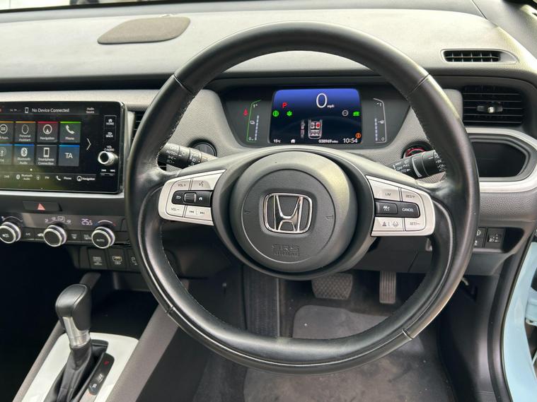 This 2022 Honda Jazz h i-MMD Crosstar EX is a Honda manufacturer approved vehicle, boasting a full service history with its last service completed on 2025-10-13 at 38969 miles, and comes with a 12 month warranty and 12 months MOT provided on purchase. This one owner vehicle is equipped with a 1.5L Petrol Hybrid Engine, meeting Euro 6 emission standards, and offers an impressive fuel economy of 59 mpg. Notable features include Adaptive Cruise Control, LED Headlights, a Rear View Camera for easier parking, and Climate Control Air Conditioning for your comfort.