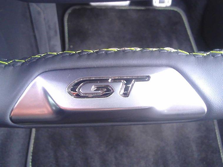 - Mistral full-grain perforated leather steering wheel with Lime Green stitch detail and satin chrome 'GT' emblem