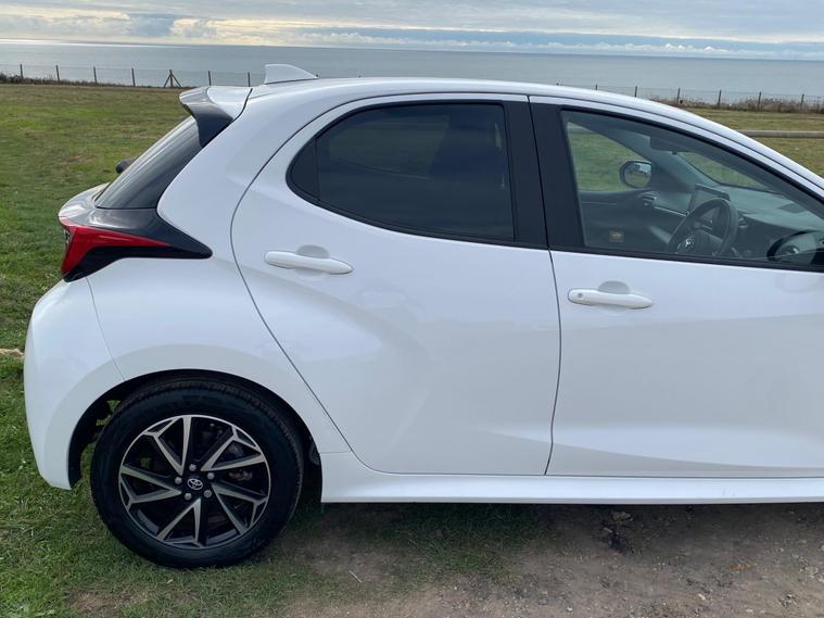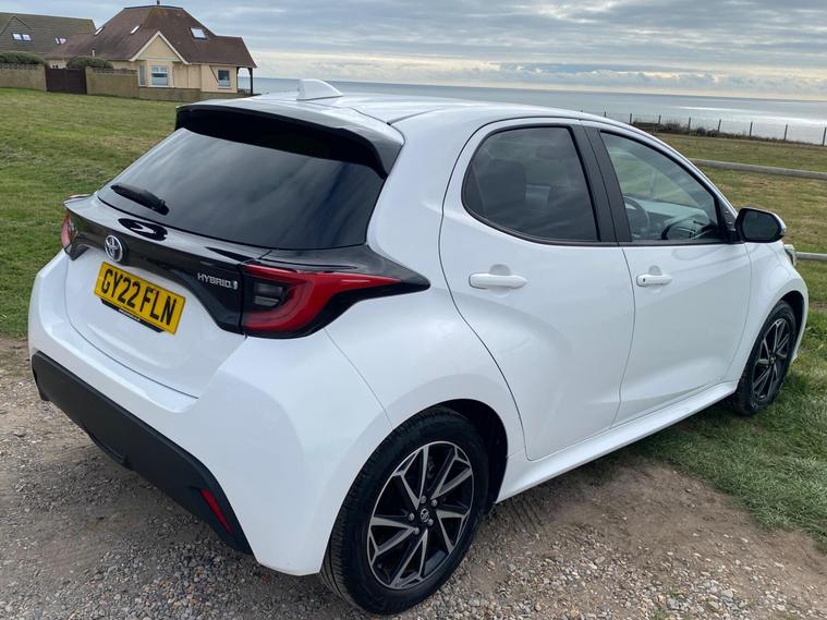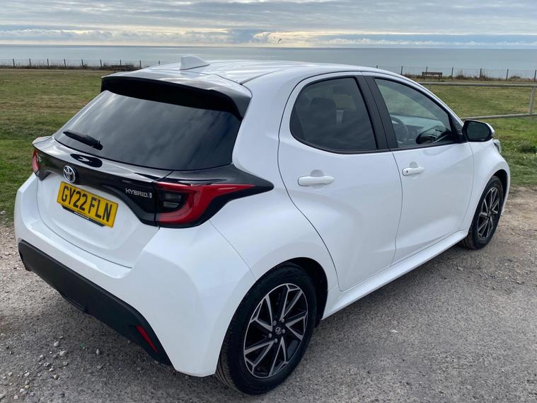 This 2022 Toyota Yaris VVT-h Design is a standout example, boasting a full dealership service history and having had only one owner from new. This Euro 6 compliant 1.5L Petrol Hybrid is presented in excellent condition with a low mileage of just 18, 204 miles, and comes with 12 months MOT for your peace of mind. As a Toyota manufacturer approved vehicle, you can be assured of its quality and reliability. Notable features include the comprehensive Toyota Safety Sense 2 suite with adaptive cruise control, seamless smartphone integration with Apple CarPlay and Android Auto, automatic headlights, a reversing camera for easier parking, and automatic climate control.