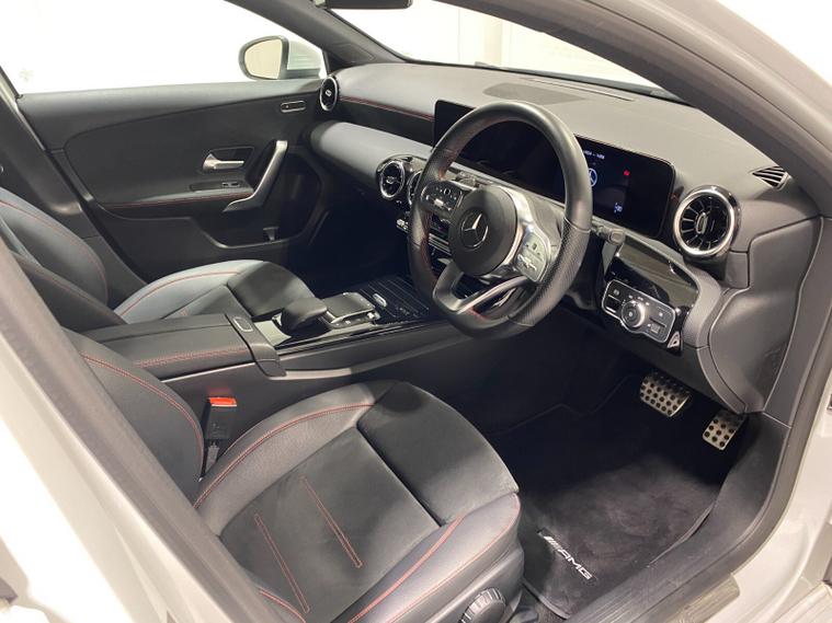 2021 21 Reg Mercedes-Benz A180 1.3 (136PS) 7G-DCT AUTOMATIC AMG LINE Executive 5dr. Digital White metallic, part LEATHER/Dinamica interior, 7 inch digital instrument display, HEATED FRONT SEATS, AMG body styling, 10.25 inch infotainment screen, SATELLITE NAVIGATION, DAB, Smartphone integration with Apple Carplay, Android Auto, cruise control with speed limiter, front & rear parking sensors, REAR VIEW CAMERA with 180 degree view, WIRELESS charge pad, Climate Control AIR CON, Dynamic Select with choice of driving modes, LED headlamps, push button start, Electronic Park brake, 18 inch 5-Twin spoke AMG alloys, tyre pressure monitoring, electric folding door mirrors with integrated LED indicators, auto wipers, auto lights, adaptive brake assist with hold function & hill start assist, 14, 350 miles (LM 21 HYG).