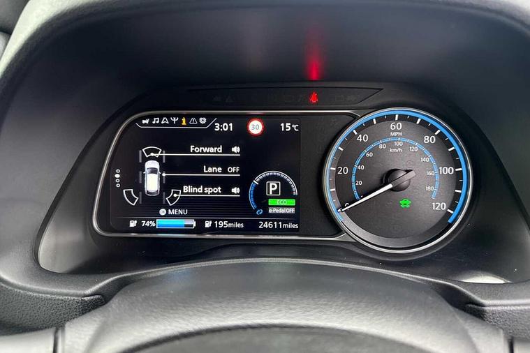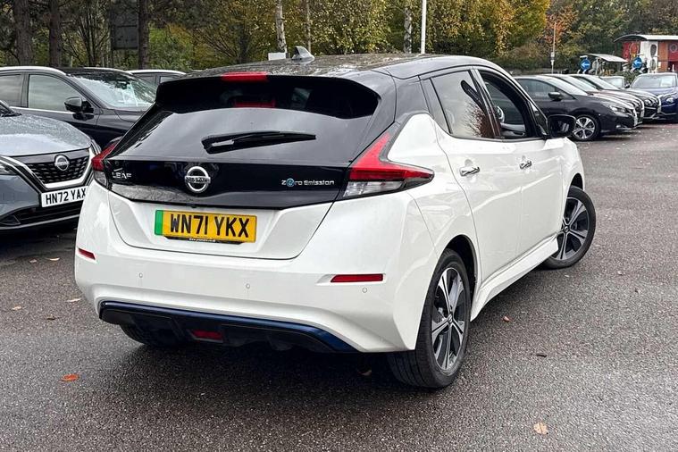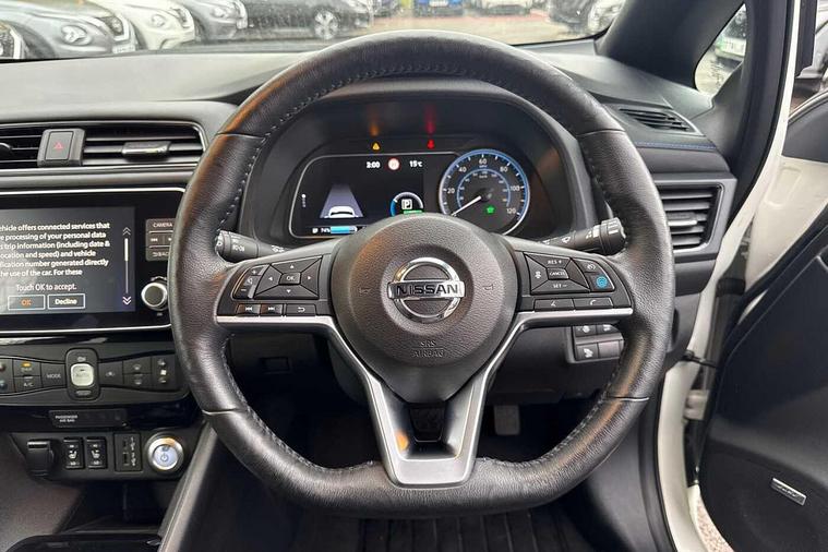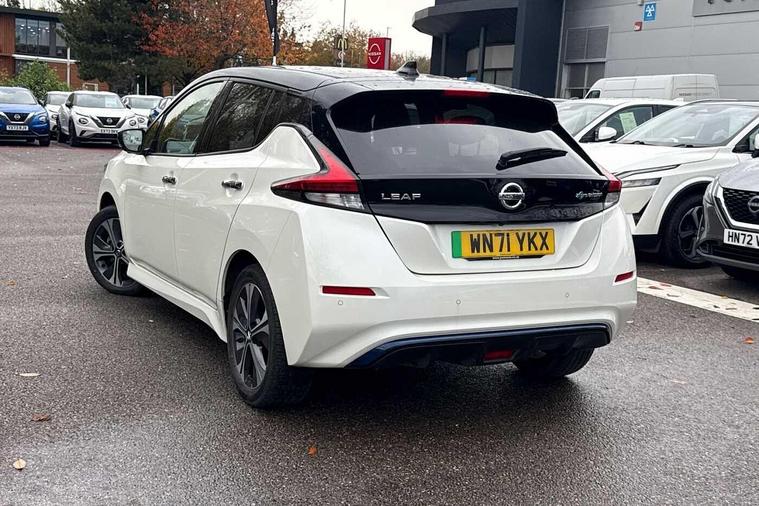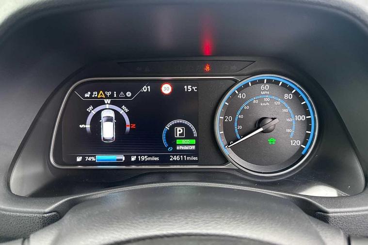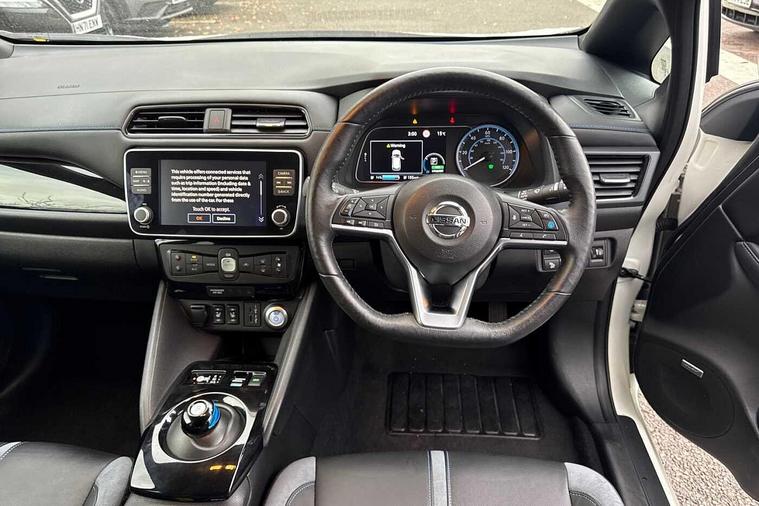 The e+ Tekna variant is designed for convenience and performance. Experience swift acceleration with a 0-62mph time of just 6.9 seconds, demonstrating its dynamic capability. Charging is flexible, taking approximately 11 hours and 30 minutes for a full charge at home using a 7kW charger, or a rapid 2 hours from empty to 80% at a public charging station. The generous boot space ensures practicality for everyday needs and longer journeys, making this Leaf a compelling choice for those seeking an efficient and well equipped electric car.