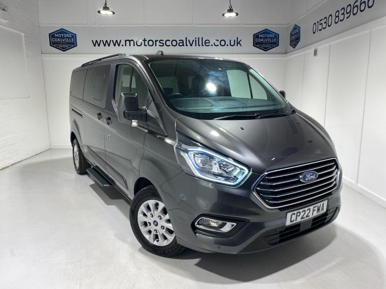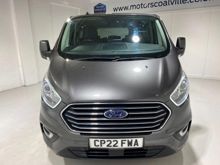 2022 22 Reg Ford Tourneo Custom 320 EcoBlue 2.0 TDCi (130PS) ZETEC LWB AUTOMATIC***8 SEATER***. Magnetic Grey metallic with charcoal cloth interior, 16 inch alloy wheels, HEATED FRONT SEATS, FRONT and REAR PARKING SENSORS, Ford SYNC 3 TOUCHSCREEN with Apple CarPlay and Android Auto, Bluetooth USB, DAB, remote central locking, front electric windows, privacy glass, electrically operated, heated and power folding mirrors, auto lights and wipers, LED daytime running lights, front fog lights, quickclear heated front windscreen, 47, 332 miles (CP 22 FWA).