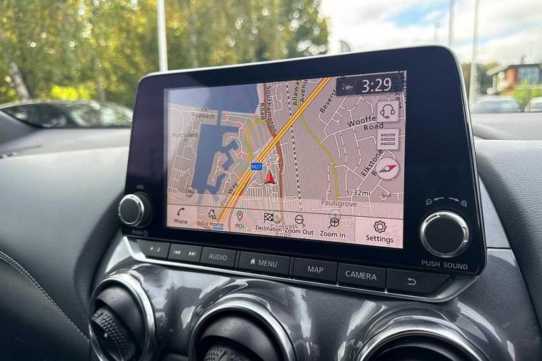 The Juke N Connecta stands out with its impressive fuel economy, achieving a highlight of 49 miles per gallon, which indicates it is more economical than many similar vehicles. Furthermore, its low CO2 emissions highlight also shows it is a more environmentally friendly choice compared to other cars in its class. This combination of efficiency, technology, and low running costs makes this Nissan Juke a compelling option.