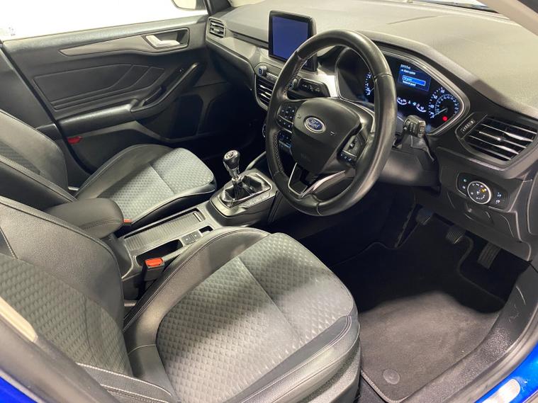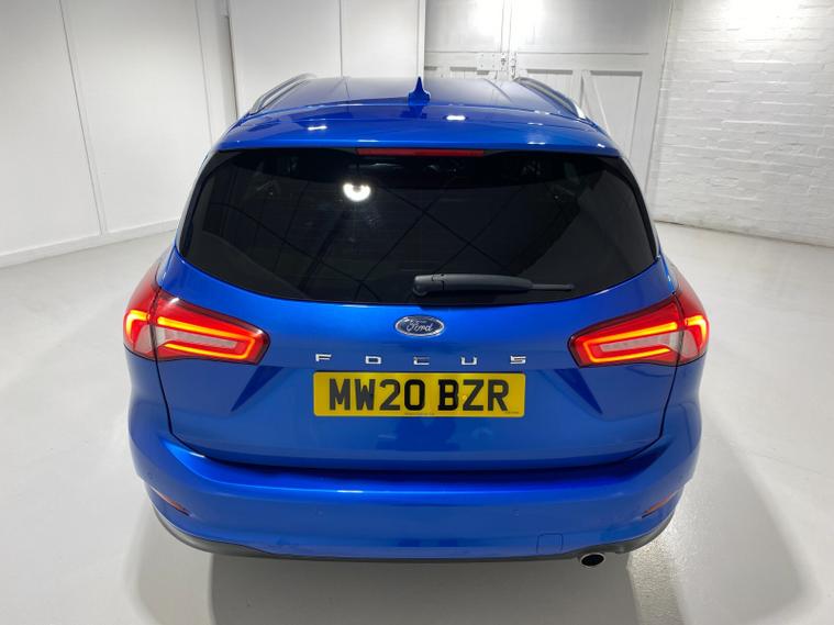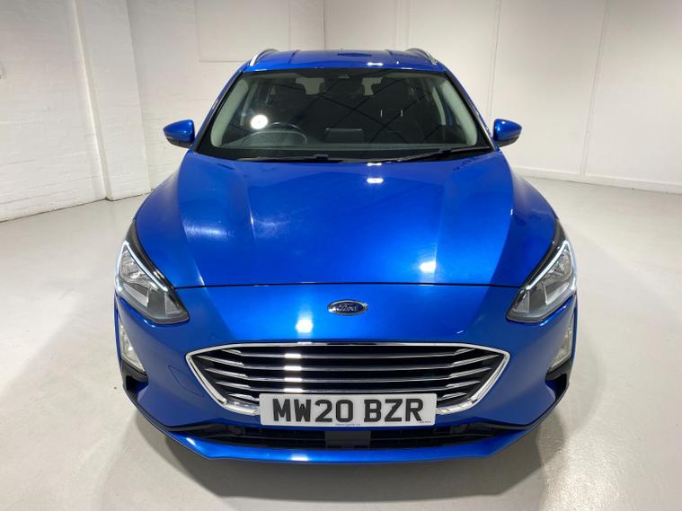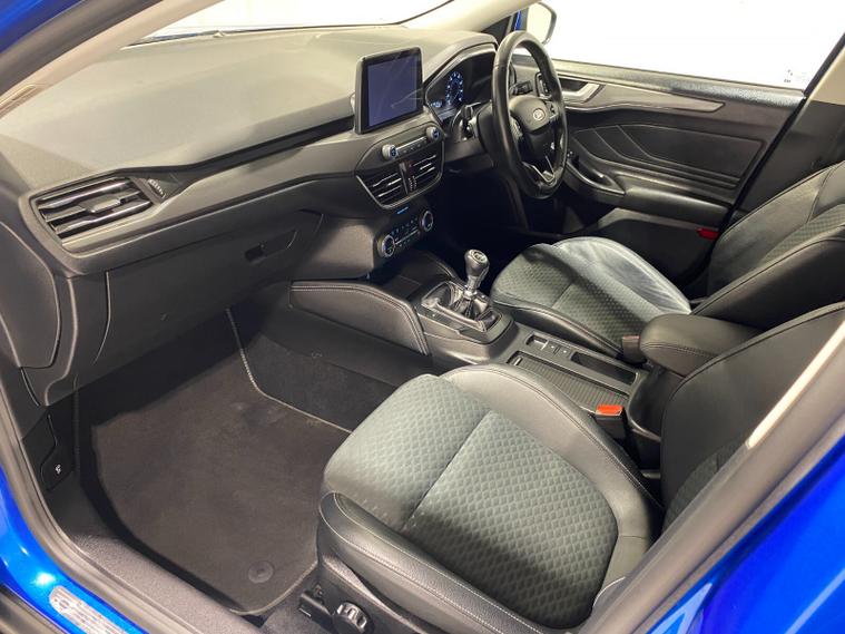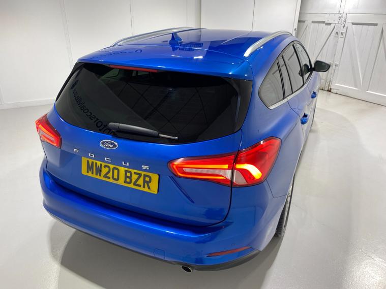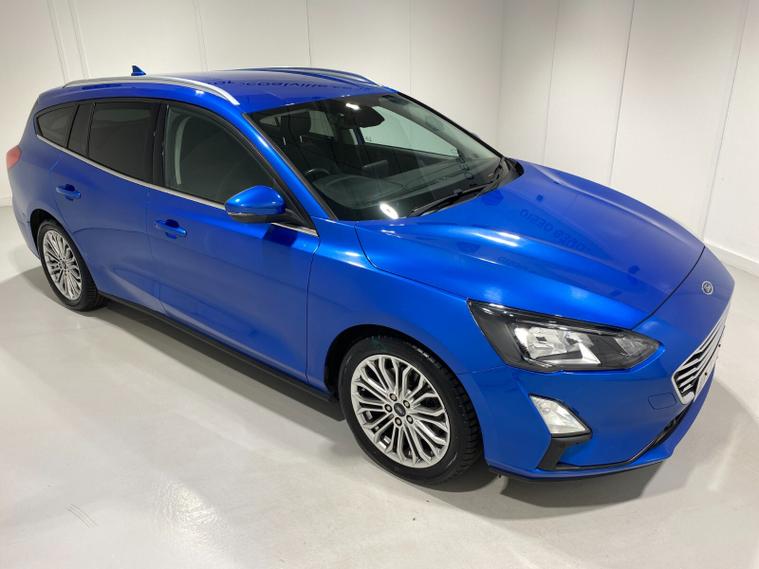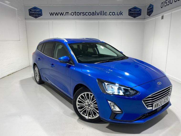 2020 20 Reg Ford Focus 1.0 Turbo Ecoboost (125PS) 6 spd TITANIUM X 5dr Estate. Desert Island Blue metallic with Ebony Sensico PART LEATHER interior, HEATED FRONT SEATS drivers 4-way electric seat adjust, TOUCHSCREEN SYNC3 SATELLITE NAVIGATION, FULL LED HEADLAMPS, 17 inch alloys, PRIVACY GLASS, KEYLESS ENTRY, POWER FOLDING DOOR MIRRORS with puddle lights, front and rear parking sensors, wireless charging, LED front fog lamps with cornering function, DEATC AIR CON, Lane Keeping aid with lane keeping alert, electric park brake with auto hold, Auto lights, wipers & auto dimming rear view mirror, Power start button, Hill start, trip computer, ESP, Quick clear front screen, Thatcham Cat 1 alarm, 20, 769 miles (MW 20 BZR).