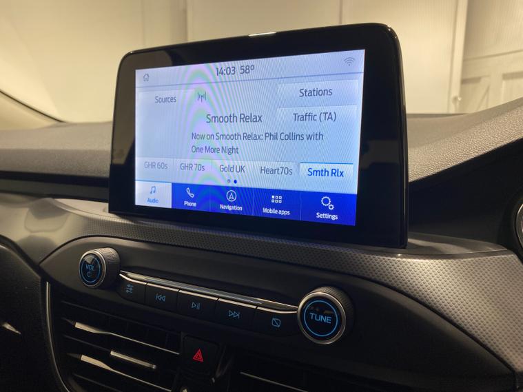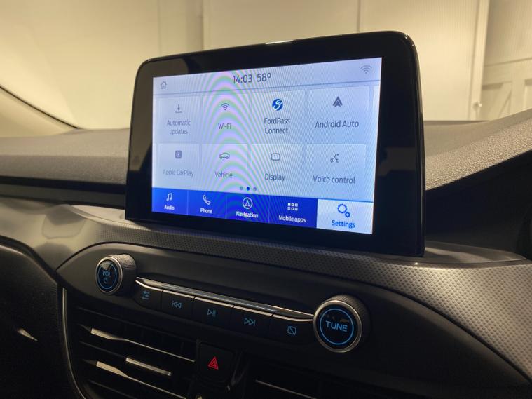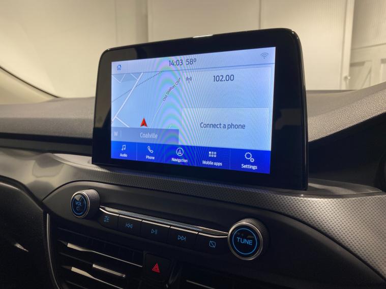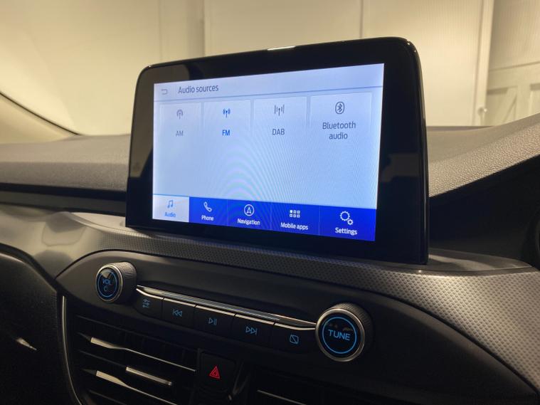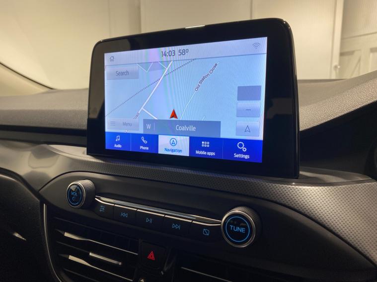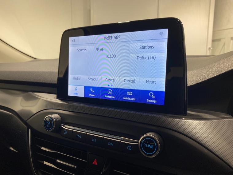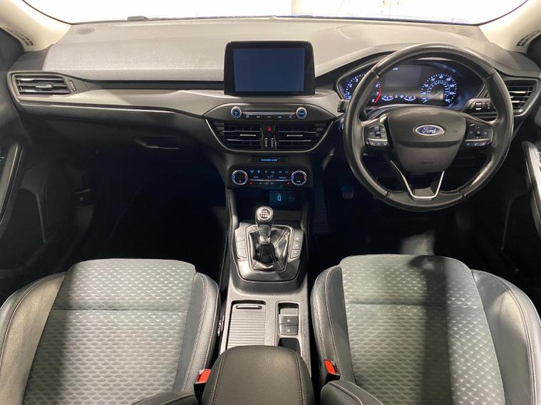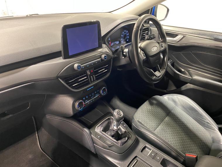 2020 20 Reg Ford Focus 1.0 Turbo Ecoboost (125PS) 6 spd TITANIUM X 5dr Estate. Desert Island Blue metallic with Ebony Sensico PART LEATHER interior, HEATED FRONT SEATS drivers 4-way electric seat adjust, TOUCHSCREEN SYNC3 SATELLITE NAVIGATION, FULL LED HEADLAMPS, 17 inch alloys, PRIVACY GLASS, KEYLESS ENTRY, POWER FOLDING DOOR MIRRORS with puddle lights, front and rear parking sensors, wireless charging, LED front fog lamps with cornering function, DEATC AIR CON, Lane Keeping aid with lane keeping alert, electric park brake with auto hold, Auto lights, wipers & auto dimming rear view mirror, Power start button, Hill start, trip computer, ESP, Quick clear front screen, Thatcham Cat 1 alarm, 20, 769 miles (MW 20 BZR).