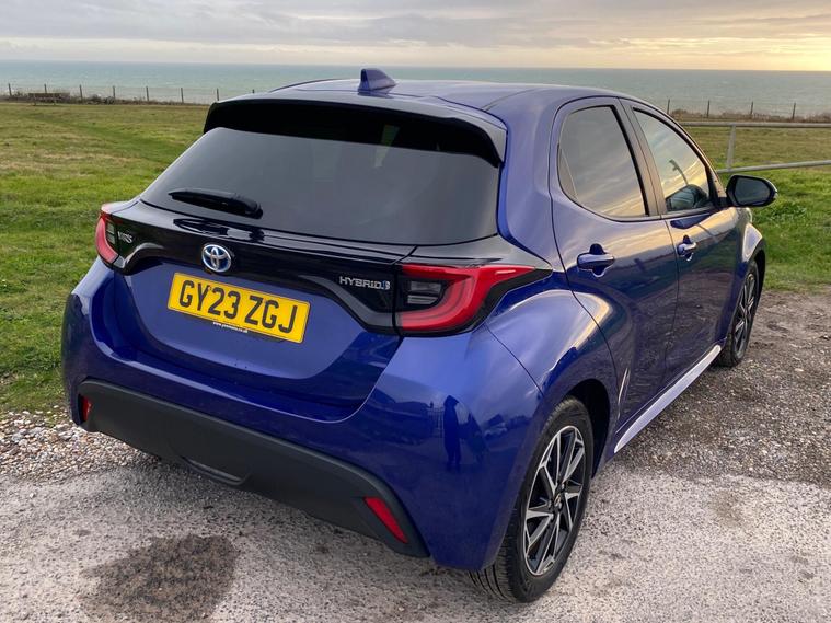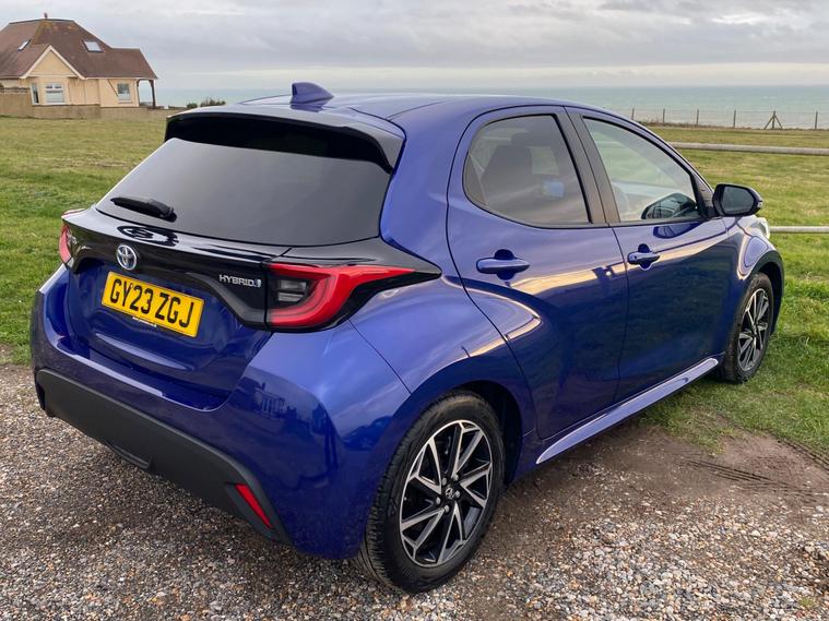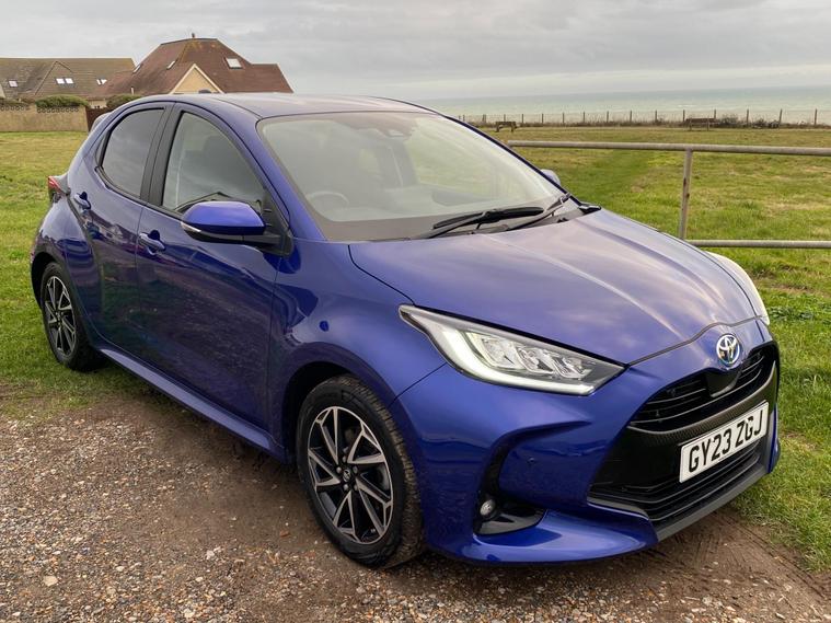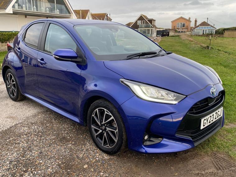 This 2023 Toyota Yaris VVT-h Design is a Toyota manufacturer approved vehicle, boasting a full service history with its last service completed on 30th April 2025 at 12, 528 miles. This Euro 6 compliant model features a 1.5L petrol hybrid engine and comes with a 12 month warranty and 12 months MOT provided on purchase. Notable features include automatic air conditioning with climate control, adaptive cruise control, Bluetooth connectivity, LED headlights, and automatic headlights.