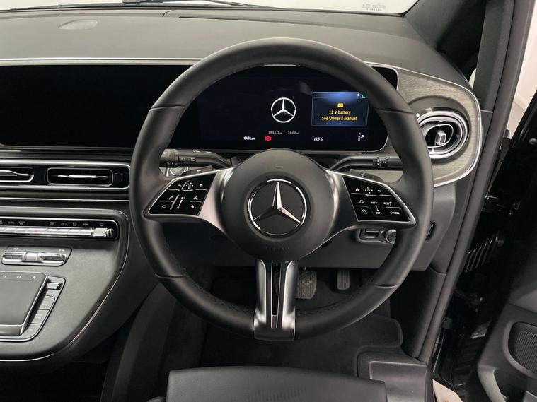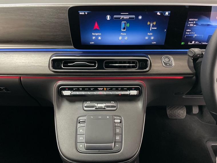 This vehicle features a sleek full black leather interior, providing a premium feel, complemented by sophisticated digital dual adaptive climate control. The exterior is equipped with 19-inch Alloy Wheels, bi-xenon headlights, and reversing camera, In addition to its comfort and style, the V Class includes Blind Spot Warning to assist drivers in maintaining awareness of surrounding traffic, an integrated sat nav system that ensures easy navigation on the go, Front and Rear Parking Sensors, Cruise Control, Keyless Go, and more.