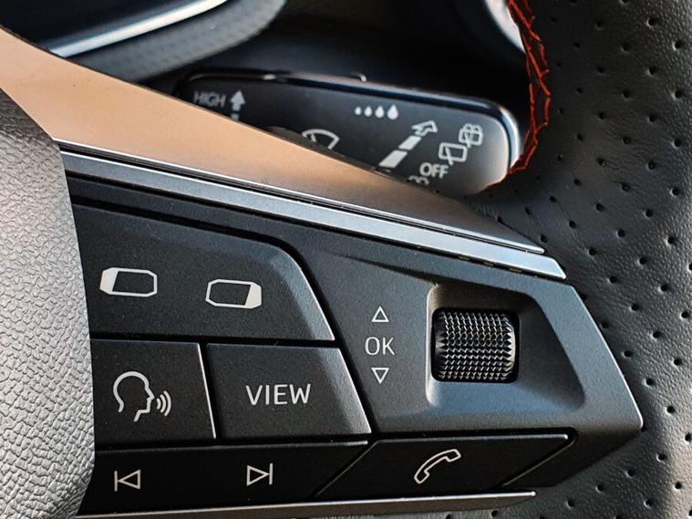 - Perforated flat bottomed leather steering wheel/gear knob/handbrake with red stitching and FR logo