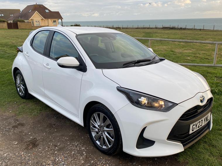 This 2023 Toyota Yaris VVT-h Icon is a truly exceptional example, boasting an incredibly low mileage of just 4808 miles and a full service history, all backed by Toyota manufacturer approval and a 12 month warranty. This one owner vehicle, finished in the Icon trim, features a responsive 1.5L petrol hybrid engine and meets Euro 6 emission standards. You'll appreciate the convenience of automatic headlights, seamless smartphone integration with Apple CarPlay and Android Auto, and Bluetooth connectivity for effortless communication on the go.