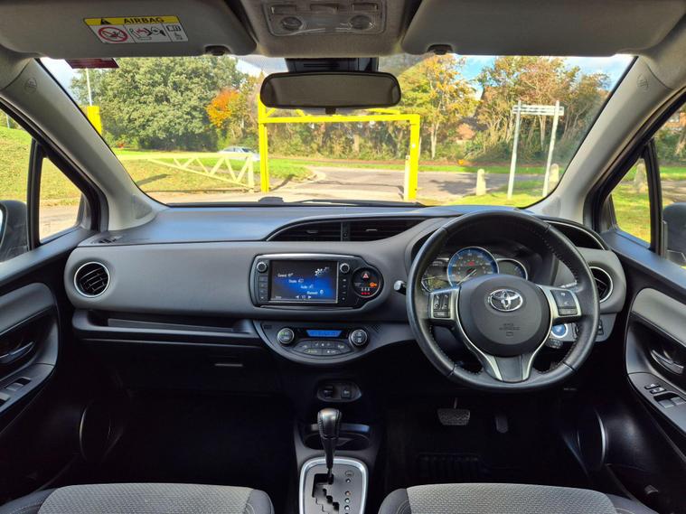 This 2017 Toyota Yaris VVT-h Icon is a Toyota manufacturer approved vehicle, boasting a full dealership service history with its last service completed on 02/10/2025 at 55, 361 miles, and comes with a 12 month warranty and 12 months MOT for your peace of mind. This 1.5L petrol hybrid model, registered in 2017, is a Euro 6 compliant vehicle. It features notable additions such as Automatic High Beam, a Pre-Collision Warning System, and Lane Departure Alert, enhancing your driving experience. For convenience, it also includes Bluetooth connectivity and Dual-Zone Automatic Air Conditioning.