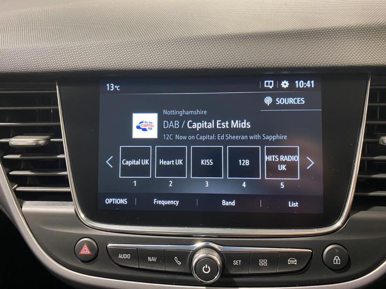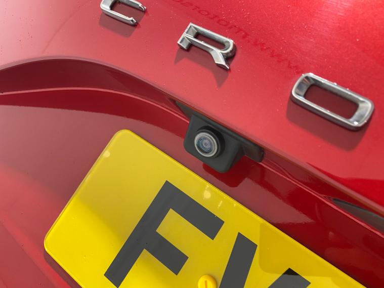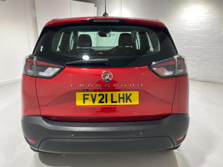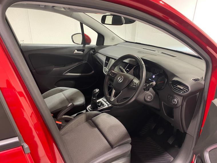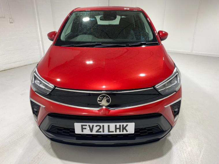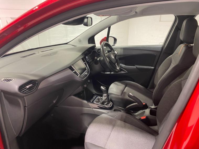 2021 21 Reg Vauxhall Crossland 1.2i (83PS) SE NAV PREMIUM 6spd 5dr. Hot Red metallic with black cloth interior, TOUCHSCREEN SATELLITE NAVIGATION, DAB, 16 inch alloys, DUAL ZONE CLIMATE CONTROL AIR CONDITIONING, Intellilink audio system with Bluetooth USB, Android Auto, Apple CarPlay, auto lights and wipers, REAR PARKING SENSORS, cruise control, remote central locking, privacy glass, front fog lights, rear spoiler, ABS, ESP, drivers and passengers front and side curtain airbags, 16, 938 miles (FV 21 LHK).