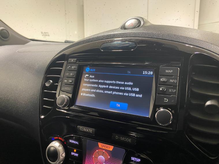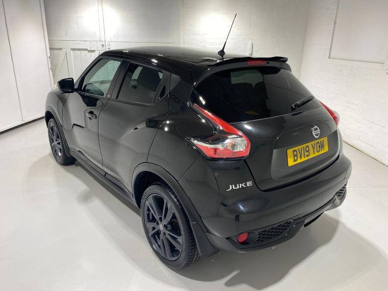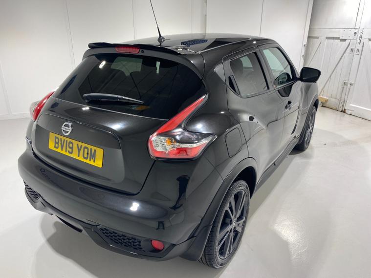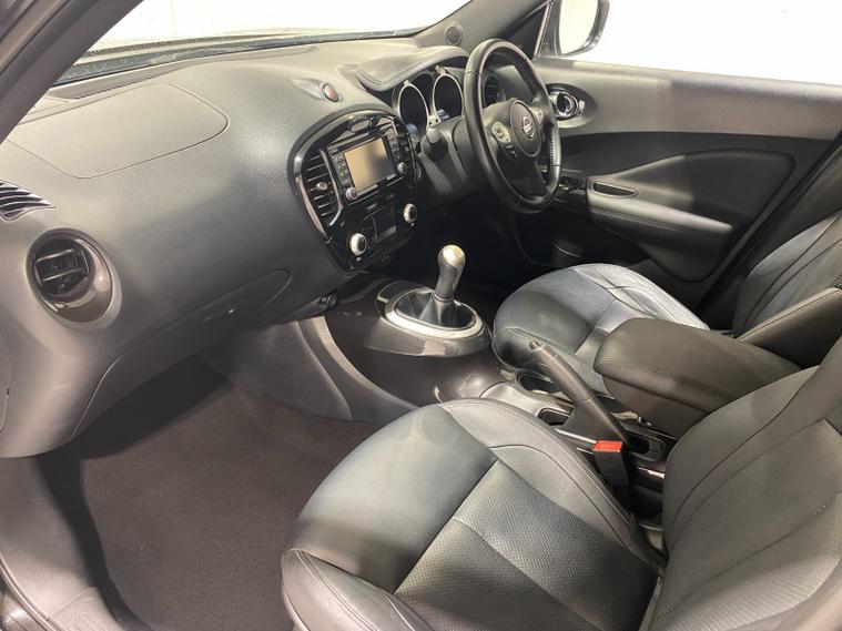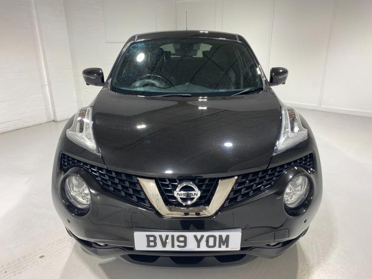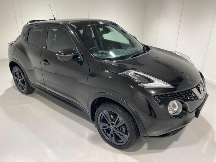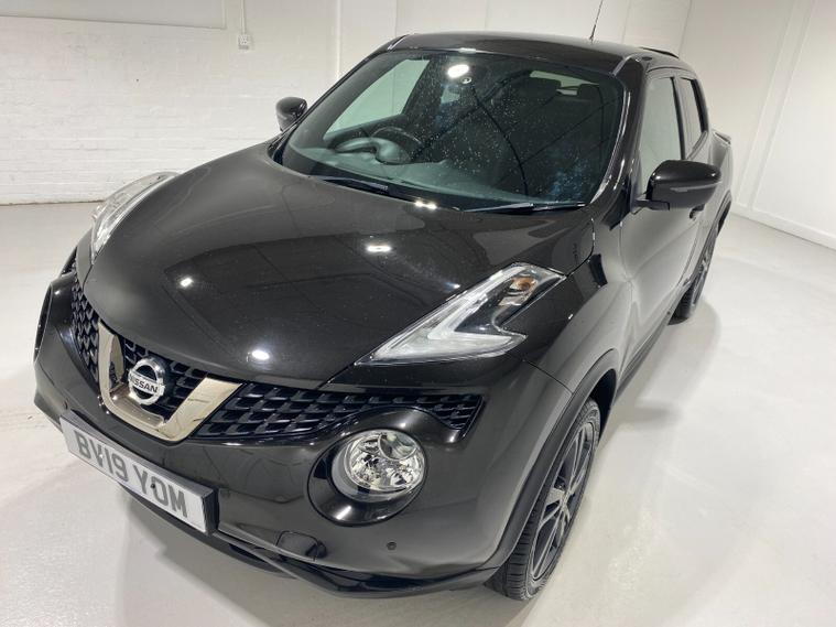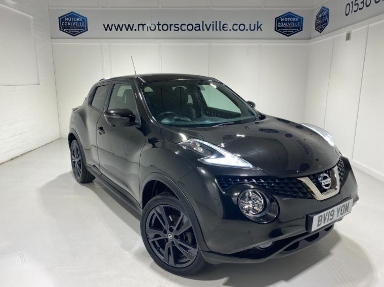2019 19 Reg Nissan Juke 1.6 (112PS) 5 spd TEKNA 5dr**BOSE Sounds**. Black metallic with black FULL LEATHER interior, 18 inch alloy wheels, TOUCHSCREEN SATELITE NAVIGATION with Bluetooth USB, CD, DAB, BOSE SOUNDS system, CLIMATE CONTROL AIR CON, 360 degree CAMERA, Blind Spot Warning, FRONT and REAR parking sensors, rear spoiler, lane keeping aid, lane departure warning, auto lights, rain sensing wipers, privacy glass, cruise control, keyless entry and push button start, front and rear electric windows, electrically operated, heated and power folding mirrors, 49, 233 miles (BV 19 YOM).