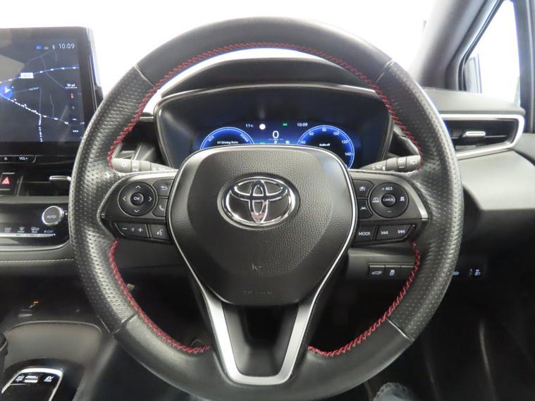 The Toyota Corolla 1.8 Hybrid GR Sport 5dr CVT is a stylish and engaging hatchback that pairs efficient hybrid performance with sporty design and modern technology. Its 1.8-litre petrol-electric hybrid powertrain and smooth CVT automatic gearbox deliver refined acceleration and excellent fuel economy, making it well-suited to both daily commutes and longer drives.
