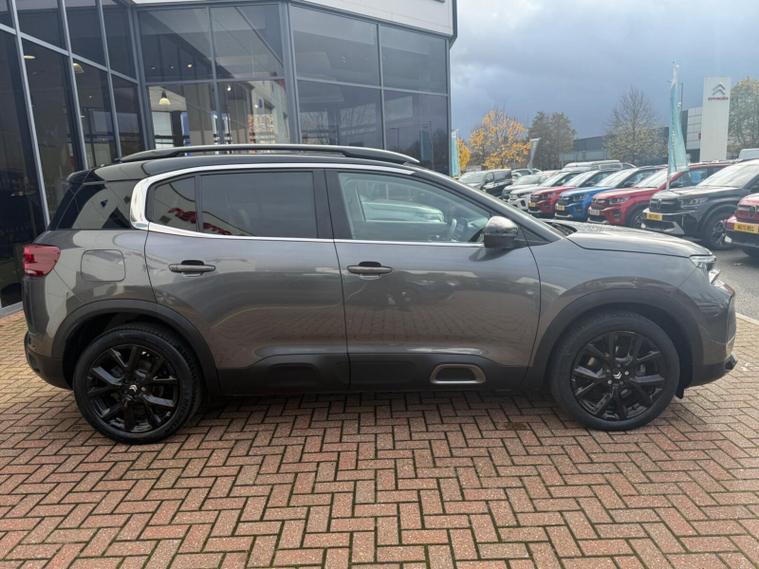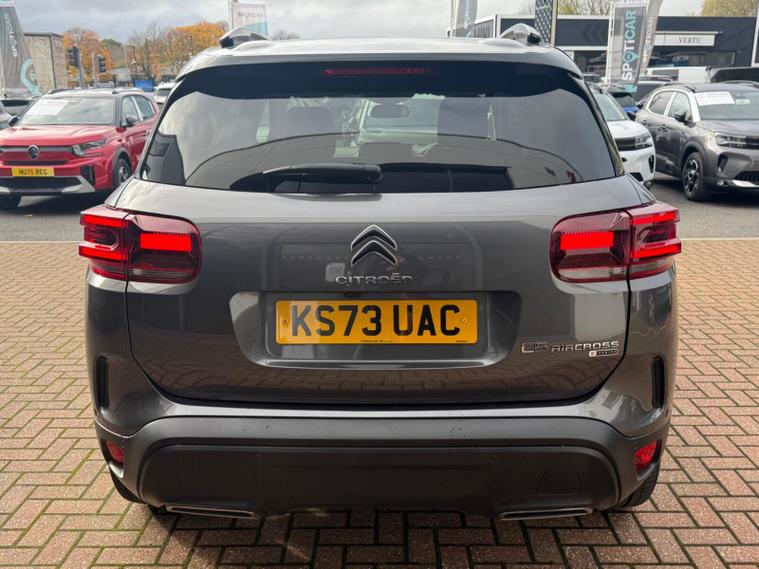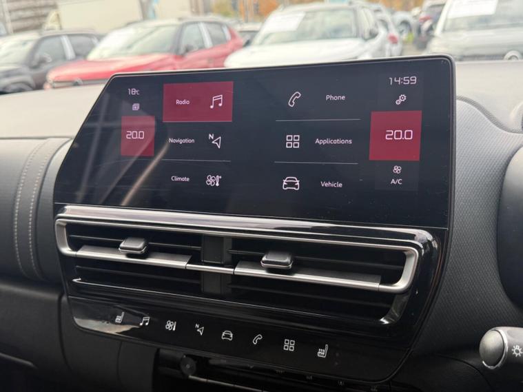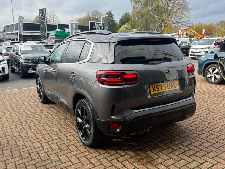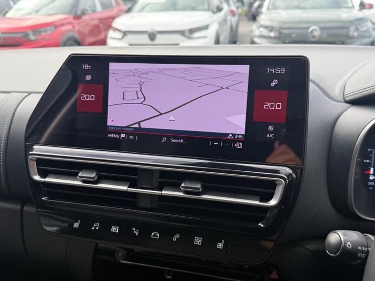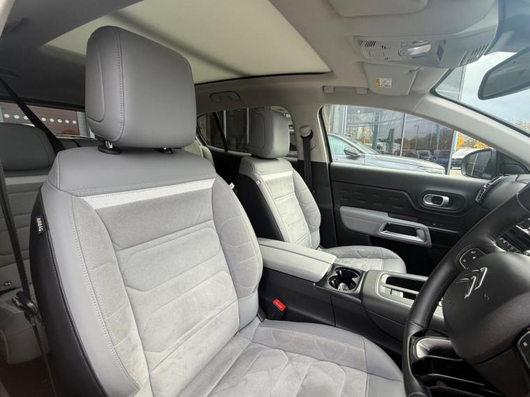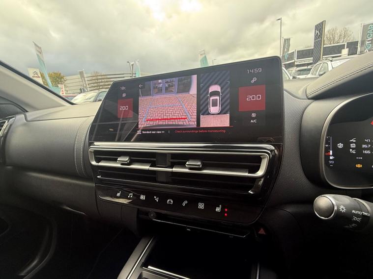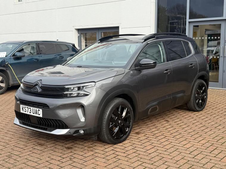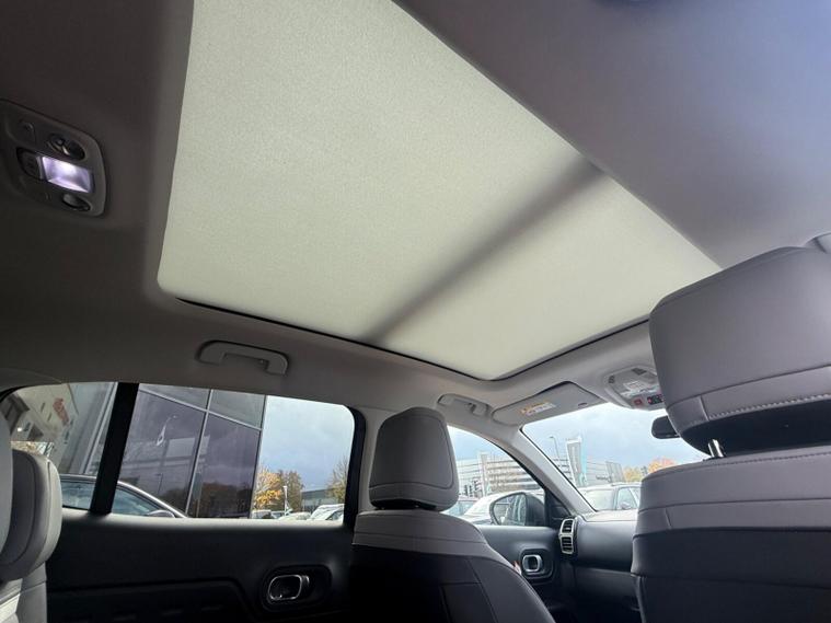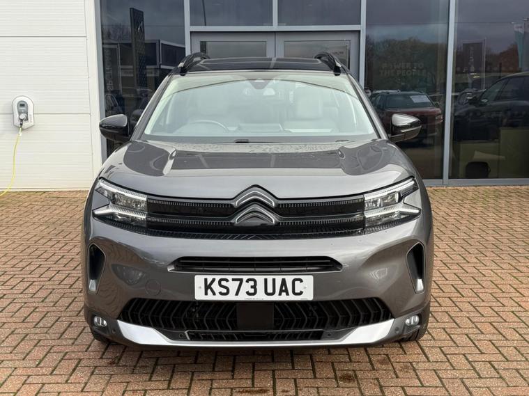 This 2023 Citroen C5 Aircross e series is a Citroen manufacturer approved vehicle, offering peace of mind with its 12 months warranty and full service history. This Euro 6 compliant 1.2 litre petrol hybrid model combines efficiency with modern technology. It features an opening panoramic roof with an electric sunblind, electric heated and folding door mirrors that include LED approach lighting and blind spot monitoring indicators, and an acoustic laminated windscreen with rain and brightness sensors. The Drive Assist Pack enhances your journey with Highway Driver Assist, adaptive cruise control, and blind spot assistance, while keyless entry and start add to the convenience.