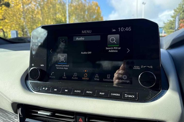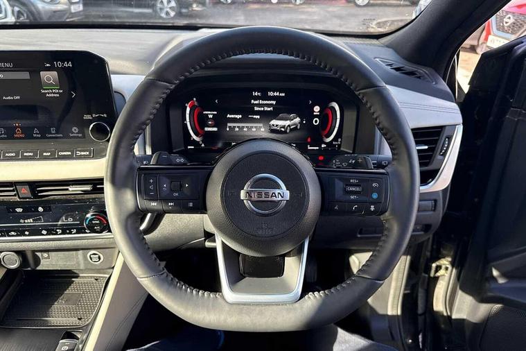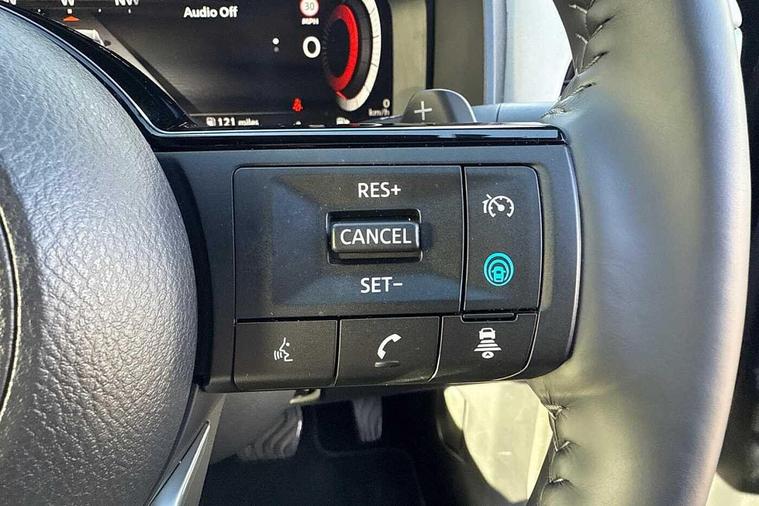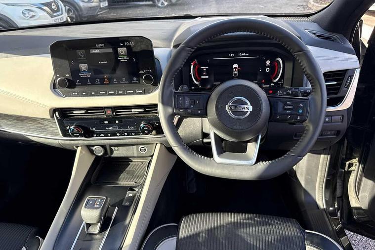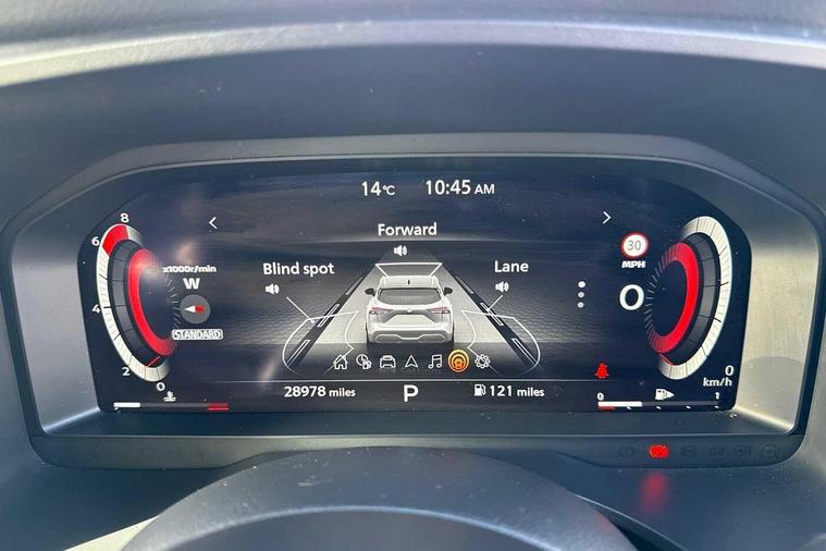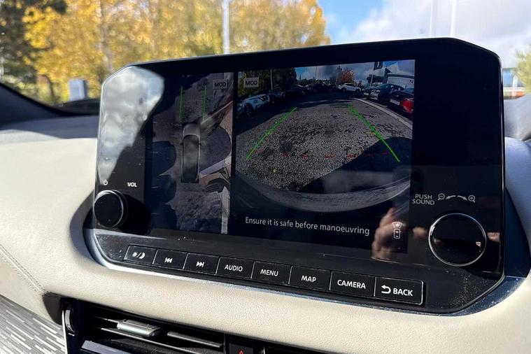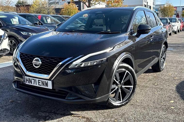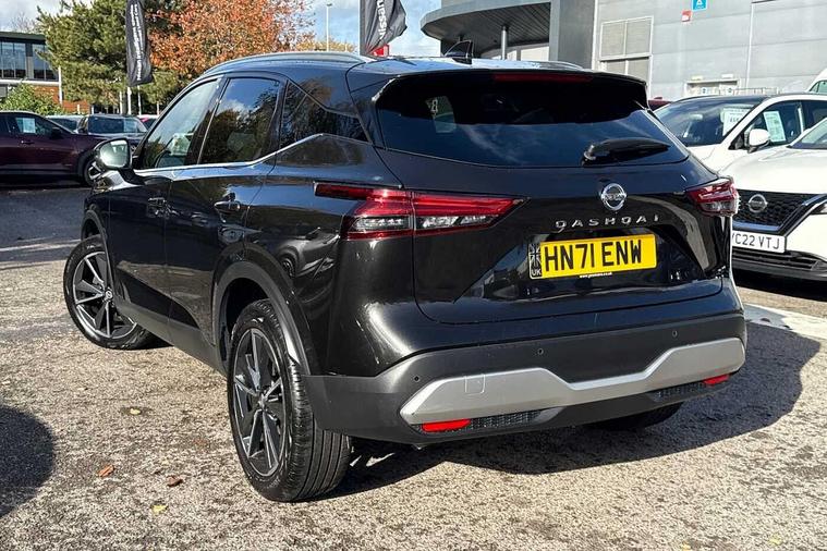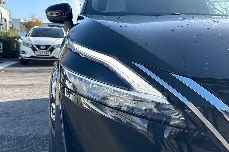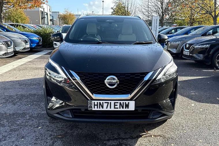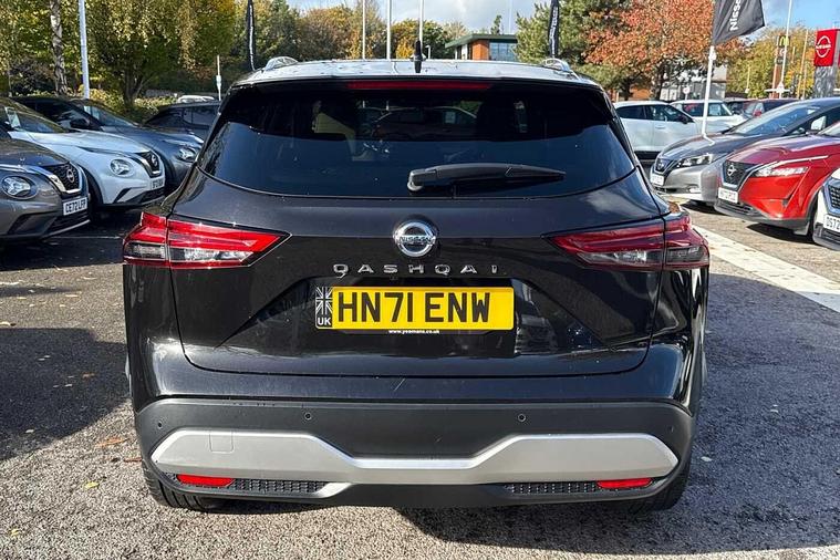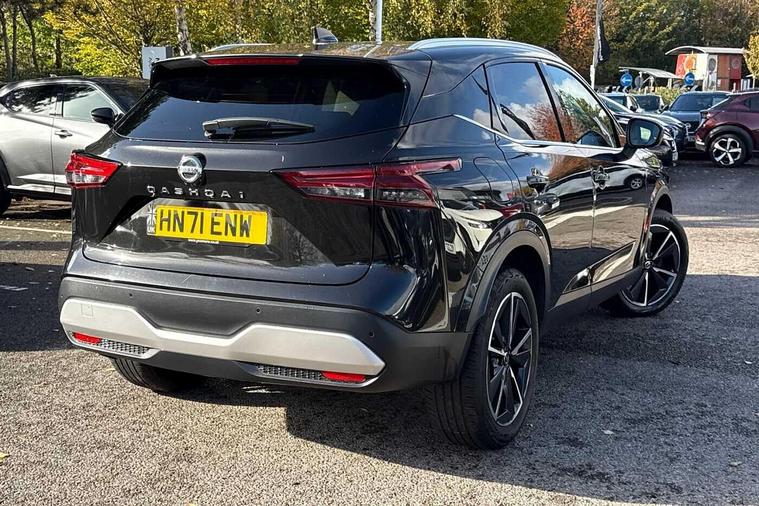 This 2021 Nissan Qashqai DIG-T Tekna is a Nissan manufacturer approved vehicle with only one owner from new. It features a 1.3L Petrol Hybrid engine and meets Euro 6 emission standards. Notable features include a dusk sensor for automatic headlights, an intelligent Around View Monitor with a 360 degree camera for parking assistance, and front and rear parking sensors. For added safety, it is equipped with Blind Spot Warning and Intelligent Blind Spot Intervention systems.