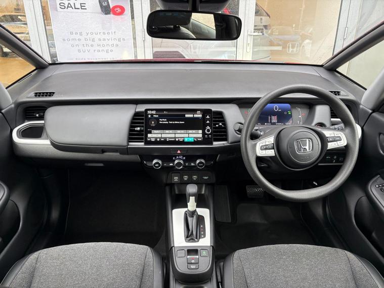 This 2022 Honda Jazz h i-MMD SR is a superb example, having had only one owner from new and boasting exceptionally low mileage of just 12, 653 miles. As a Honda manufacturer approved vehicle, you can be assured of its quality and condition. This Euro 6 compliant model features a responsive 1.5 litre petrol hybrid engine, offering an impressive fuel economy of 63 miles per gallon. The SR trim level comes equipped with a host of convenient features, including adaptive cruise control, automatic headlights, and parking sensors both front and rear for effortless manoeuvring. Stay connected on the go with Bluetooth hands free telephone and enjoy seamless integration with your smartphone thanks to wireless Apple CarPlay.
