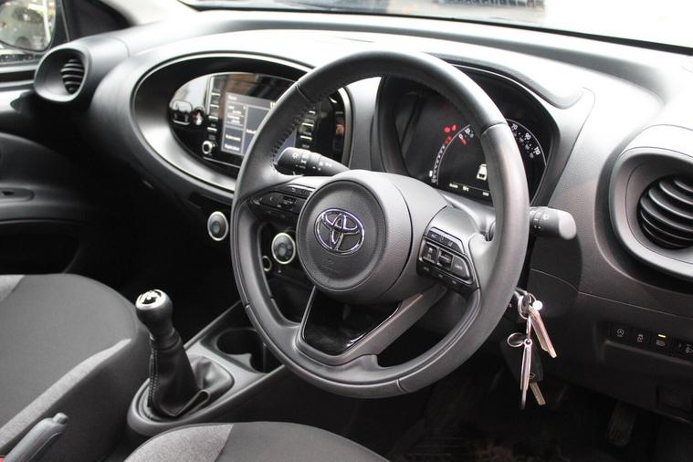 This 2022 Toyota Aygo X VVT-i Pure presents a remarkable opportunity with its exceptionally low mileage of just 13906 miles for its age, a testament to its careful ownership. As a Toyota manufacturer approved vehicle, you can be assured of its quality and reliability. This Euro 6 compliant model is powered by an efficient 1.0L Petrol engine and comes equipped with desirable features such as Bluetooth connectivity for seamless calls and music streaming, automatic headlights for enhanced visibility, manual air conditioning to keep you comfortable, and intelligent adaptive cruise control conveniently located on the steering wheel for relaxed journeys.