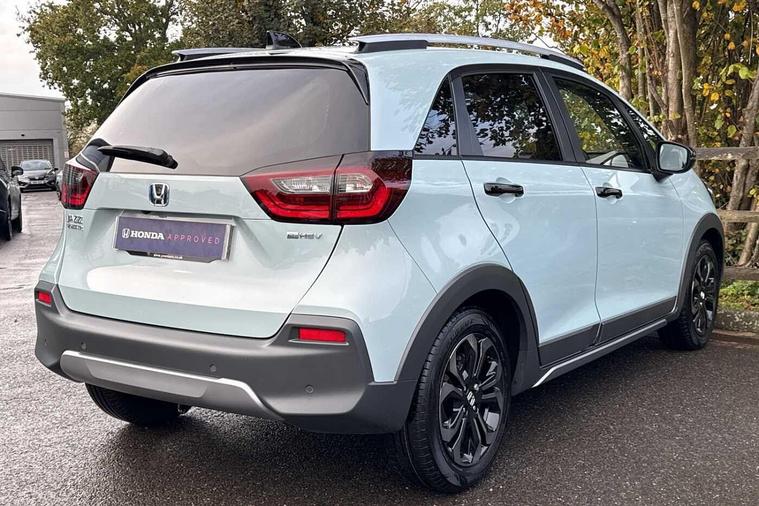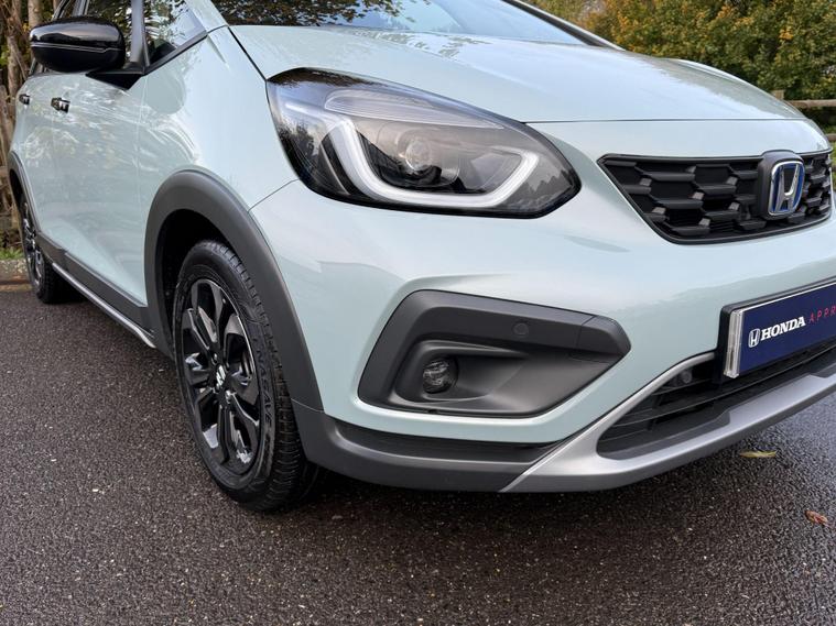 This 2025 Honda Jazz i-MMD Crosstar Advance presents an exceptional opportunity with an incredibly low mileage of just 875 miles, making it virtually as new. As a Honda manufacturer approved vehicle, it benefits from a full dealership service history, offering complete peace of mind. This Crosstar Advance model is equipped with a responsive 1.5L petrol hybrid engine, meeting Euro 6 emission standards. Notable features include a rear view camera with parking assistance, climate control air conditioning, wireless Apple CarPlay integration, and striking LED headlights. The adaptive cruise control further enhances the driving experience.