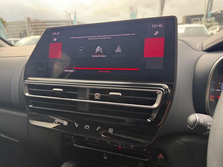 This 2023 Citroen C5 Aircross C Series Edition offers exceptional provenance with only one owner from new and a remarkably low mileage of just 12, 572 miles. This Euro 6 compliant 1.2L petrol model comes with a full service history and the reassurance of 12 months warranty, having been Citroen manufacturer approved. Inside, you'll find the convenience of Keyless Entry and Start, alongside Automatic Dual Zone Climate Control to ensure passenger comfort. The Citroen Connect Play system seamlessly integrates your smartphone with Android Auto and Apple CarPlay, while LED Headlights provide excellent visibility.