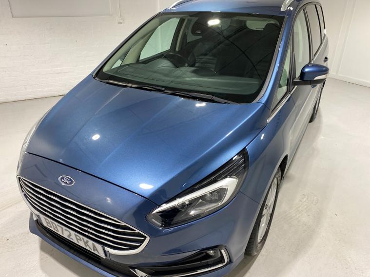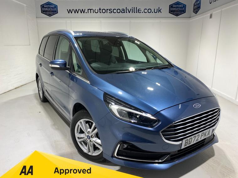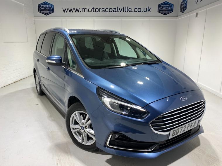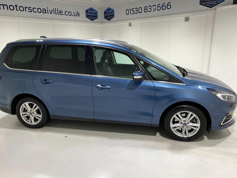 2022 72 Reg GALAXY 2.0 TDCi (150PS) 8 spd Automatic TITANIUM **7 seater**LUX PACK** 5dr. Chrome Blue metallic with Ebony cloth interior, LUX PACK with ADAPTIVE LED HEADLIGHTS, FULL LEATHER SEATS, HEATED FRONT SEATS, 10 WAY POWER FRONT SEATS and ELECTRIC OPENING TAILGATE, TOUCHSCREEN SYNC 3 DAB and NAVIGATION SYSTEM, Bluetooth and voice control, KEYLESS ENTRY, FRONT and REAPR PARKING SENSORS, Electric handbrake, Lane Keeping Aid, Traffic Sign recognition, power start button, Dual Zone ATC AIR CONDITIONING, power easy fold flat 3 row seats, cruise control with speed limiter, PRIVACY glass, auto wipers and lights, IPS system, ESP, Tyre Pressure monitor system, power front and rear windows with global closing, quickclear heated windscreen, remote locking, Thatcham alarm, ABS, 24, 580 miles (BD 72 PKA).