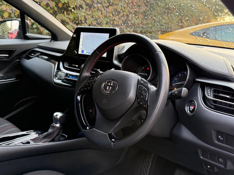 This 2022 Toyota C-HR VVT-h GR SPORT is a superb example, having had only one owner since new. This stylish hatchback features a 1.8L petrol hybrid engine, meeting Euro 6 emissions standards. It comes equipped with the GR SPORT trim, enhancing its appeal. For convenience, it includes a Parking Pack with front and rear parking sensors, a reversing camera, and automatic headlights. Inside, you'll find the Toyota Touch 2 multimedia system, complete with an 8 inch display, Android Auto, Apple Car Play, and Bluetooth connectivity.