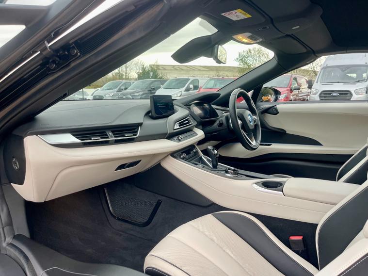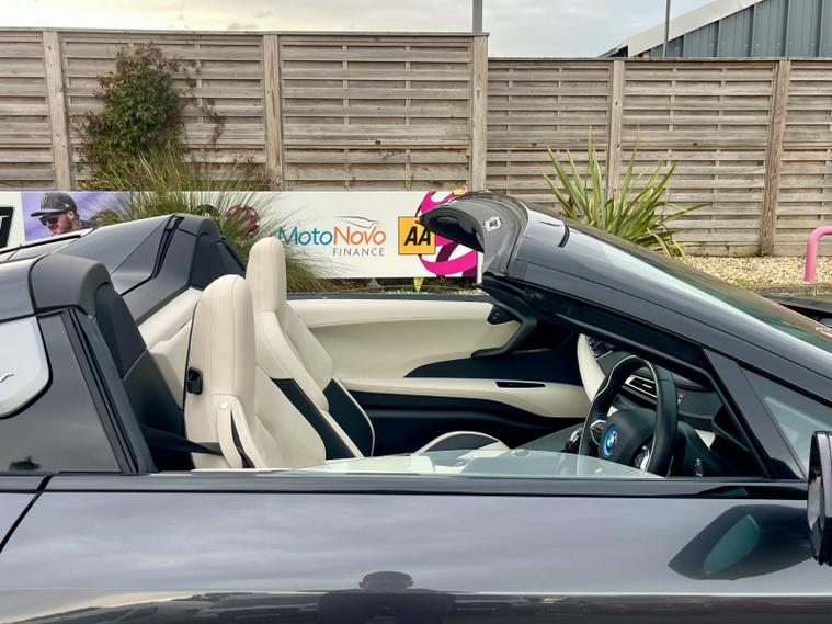 Powered by a 1.5-litre TwinPower Turbo petrol engine paired with an electric motor, the i8 Roadster delivers an exceptional driving experience—combining instant electric torque with refined automatic power delivery. The plug-in hybrid system ensures both thrilling acceleration and impressive efficiency, while the convertible roof adds open-air freedom to its futuristic appeal.