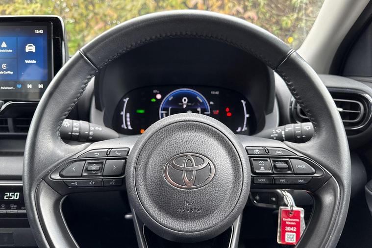 This 2024 Toyota Yaris VVT-h Design is a superb example, having had only one owner since new. This stylish hatchback is equipped with a responsive 1.5L petrol hybrid engine, meeting Euro 6 emission standards. Inside, you'll find seamless Smartphone Integration, offering Apple Car Play and Android Auto for effortless connection to your digital life. The Toyota Safety Sense 2 suite provides advanced driver assistance, including Adaptive Cruise Control for more relaxed journeys. Further enhancing visibility and safety are the crisp LED headlights, while Bluetooth connectivity ensures hands free calls and audio streaming.