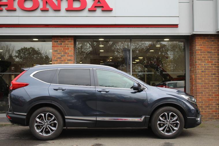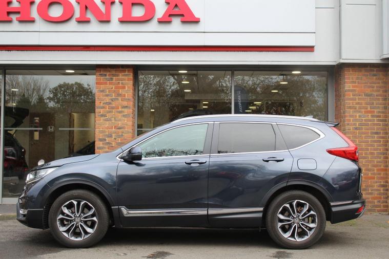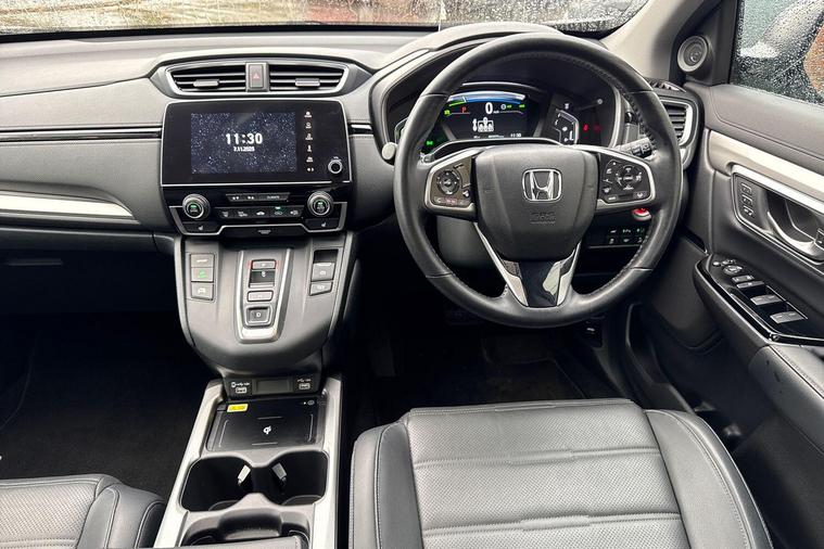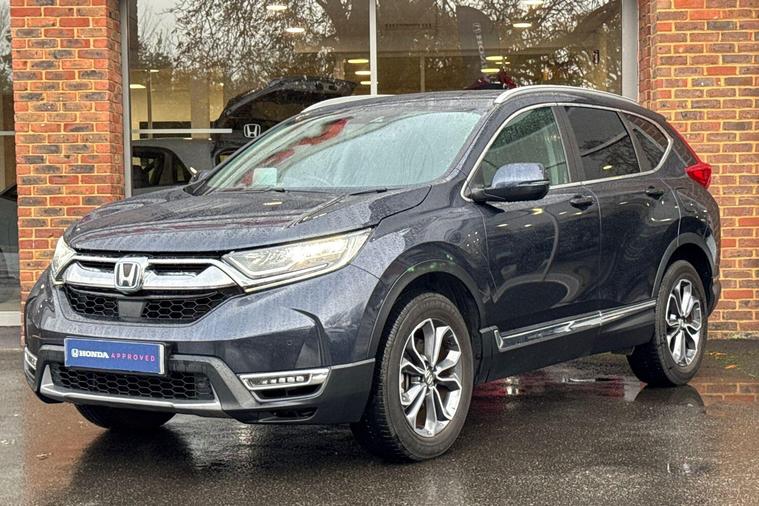 This 2022 Honda CR-V h i-MMD EX is a Honda manufacturer approved vehicle, boasting a single owner from new. It features a responsive 2.0L Petrol Hybrid engine paired with a Four Wheel Drive drivetrain, meeting the Euro 6 emission class. Notable features include convenient Wireless Charging, a helpful Rear View Camera for parking assistance, and an informative Head Up Display. For a more relaxed driving experience, it is equipped with Adaptive Cruise Control, and the journey is illuminated by bright LED Headlights.