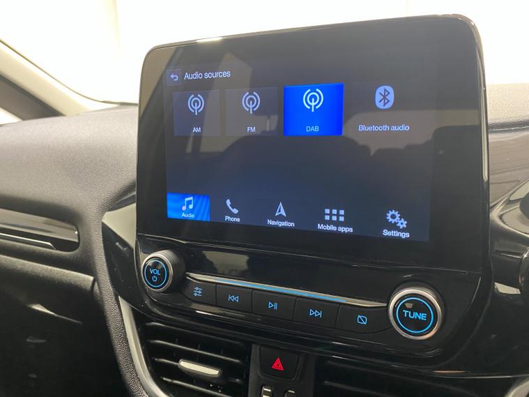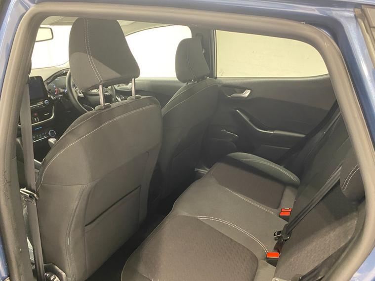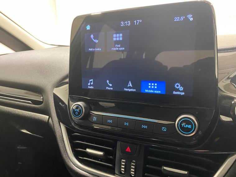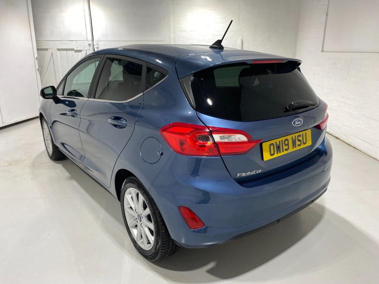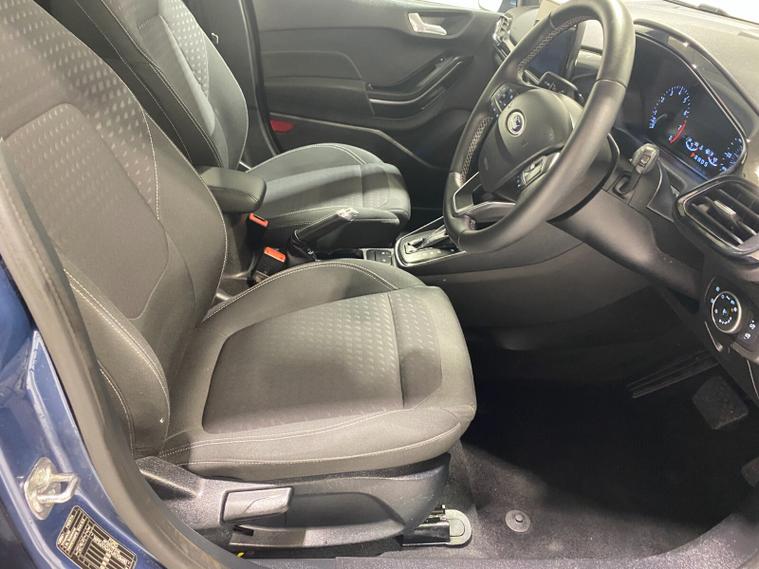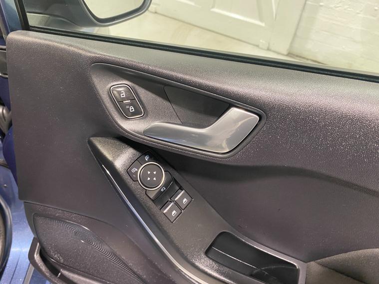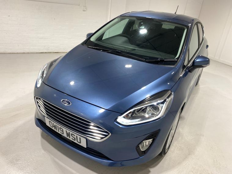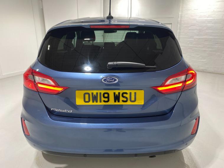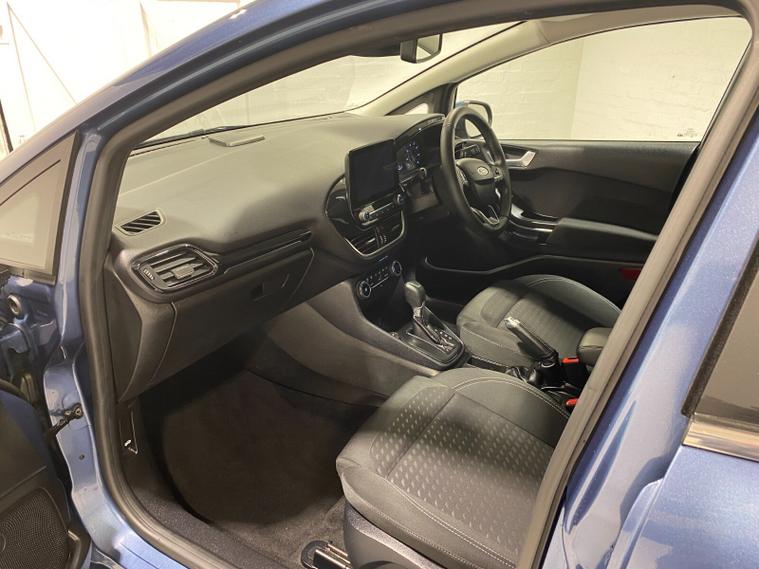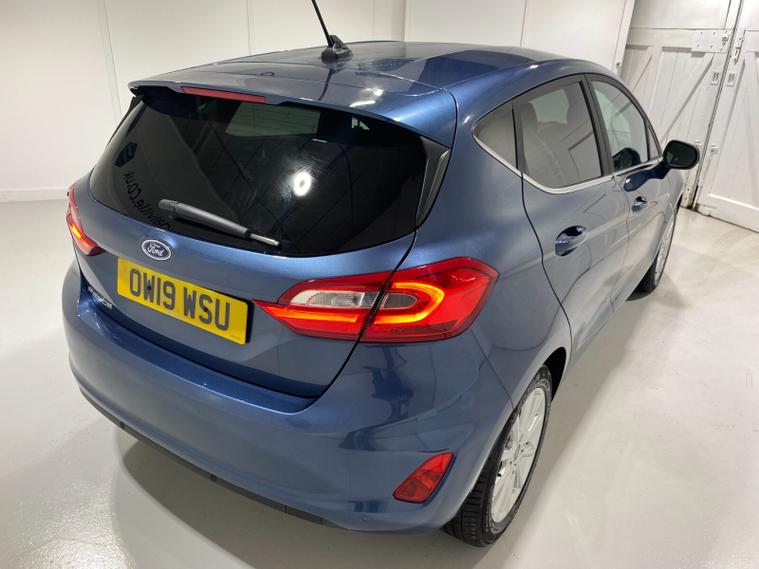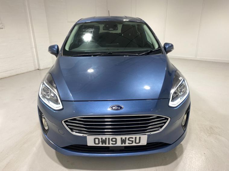2019 19 Reg Fiesta 1.0 Turbo Ecoboost (100PS) Automatic TITANIUM 5dr. Chrome Blue, SYNC 3 DAB SATELLITE NAVIGATION with 8 inch touch screen, charcoal interior, EATC AIR CON, REAR PARKING SENSORS, LED night signature rear lights, PRIVACY GLASS, KEYLESS start with FORD power start button, cruise control, auto light and rain sensing wipers, centre console with arm rest, tyre pressure monitoring system, Thatcham alarm, NCAP Pack (lane-keeping alert & lane-keeping aid, speed limiter, rear seat belt minder, rear centre head restraint & auto-headlamps), front fog lamps with cornering lights, heated front screen, remote central locking, electric front windows, ESP, Hill start assist, trip computer, ambient lighting, ONLY 3, 385 miles (OW 19 WSU).