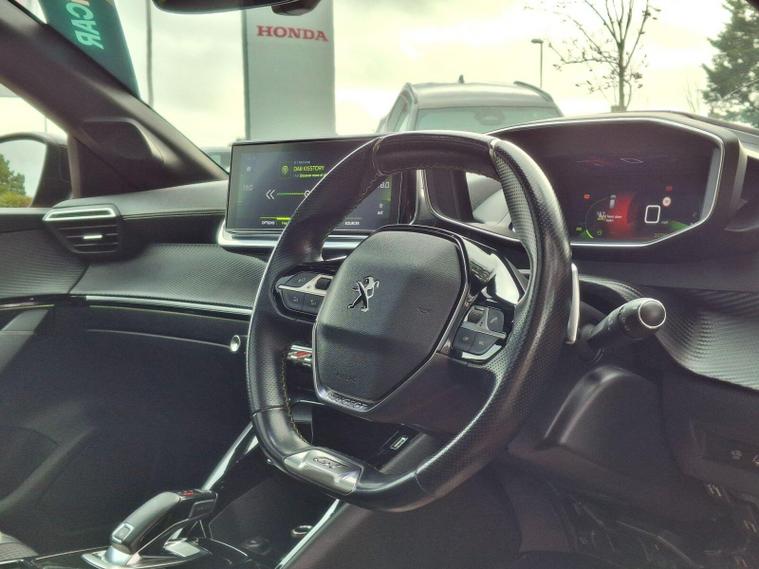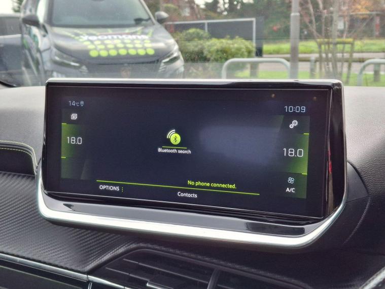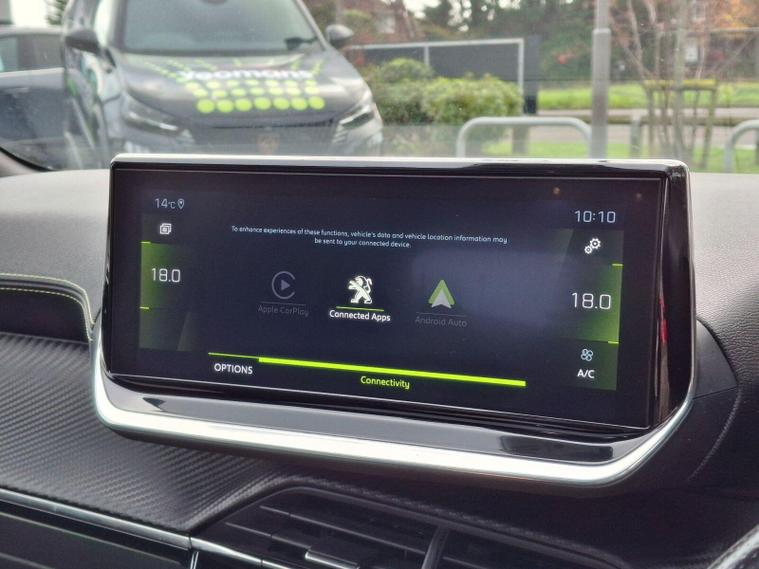 This 2020 Peugeot 208 GT Line is a Peugeot manufacturer approved vehicle, offering you complete peace of mind with a 12 month warranty and a full service history. This stylish hatchback boasts a low mileage of just 33, 000 miles for its age. Under the bonnet, you'll find an efficient 1.2L petrol engine that meets Euro 6 emission standards. Inside, the GT Line trim level comes equipped with a stunning Cielo panoramic glass roof, a wireless smartphone charging plate, and automatic dual zone air conditioning for ultimate comfort. The Visibility Pack ensures you always have optimal lighting with automatic headlights, while the semi automatic parking assist makes manoeuvring effortless.