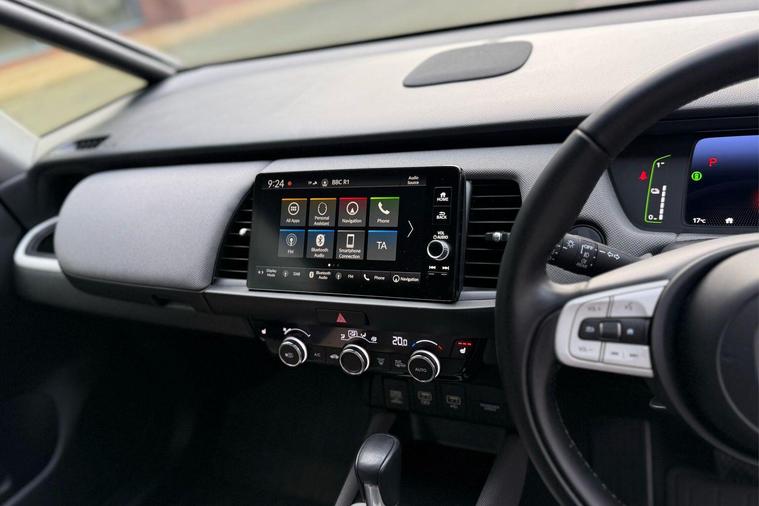 Navigating tight spaces is made effortless with front and rear parking sensors, while the inclusion of wireless Apple CarPlay allows for intuitive access to your favourite apps. The Smart Entry and Start system adds a touch of modern convenience, letting you unlock and start the car without needing to reach for your keys. These features collectively demonstrate how this Honda Jazz Crosstar EX provides a superior driving experience compared to other vehicles in its class, offering both practicality and advanced technology for everyday journeys.