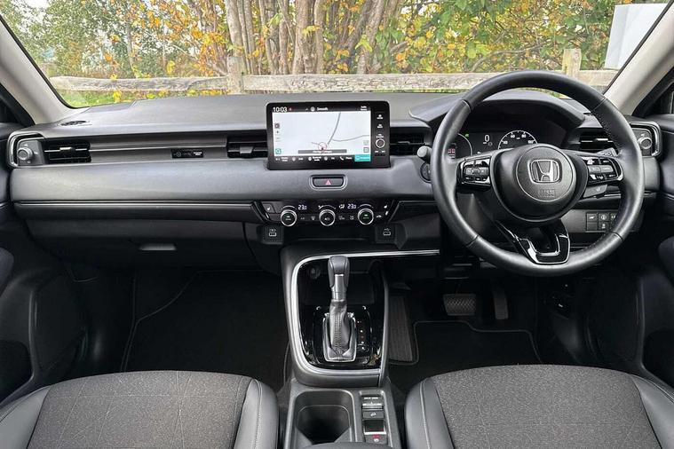 This 2024 Honda HR-V i-MMD Advance is presented in exceptional condition, having been owned by only two owners from new and boasting a full dealership service history. As a Honda manufacturer approved vehicle, it offers peace of mind, complemented by its remarkably low mileage of just 6900 miles for its age. This Advance trim model features a sophisticated 1.5L Petrol Hybrid Engine, meeting Euro 6 emission standards, and comes equipped with the intuitive Honda CONNECT system, complete with navigation, Android Auto, and Apple CarPlay. Automatic headlights, which turn on automatically, further enhance convenience and safety.