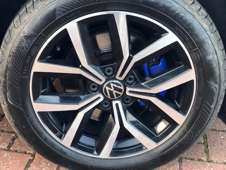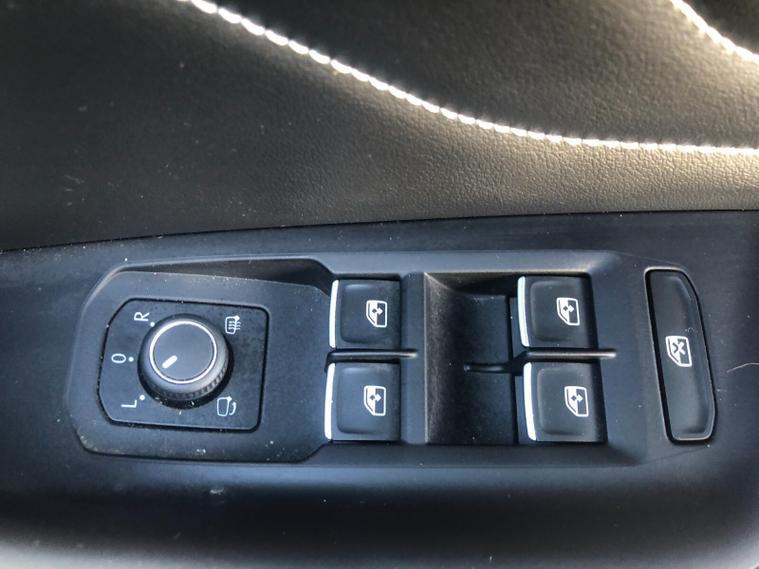 - Leather trimmed three spoke multifunction steering wheel and gear knob with blue contrast stitching